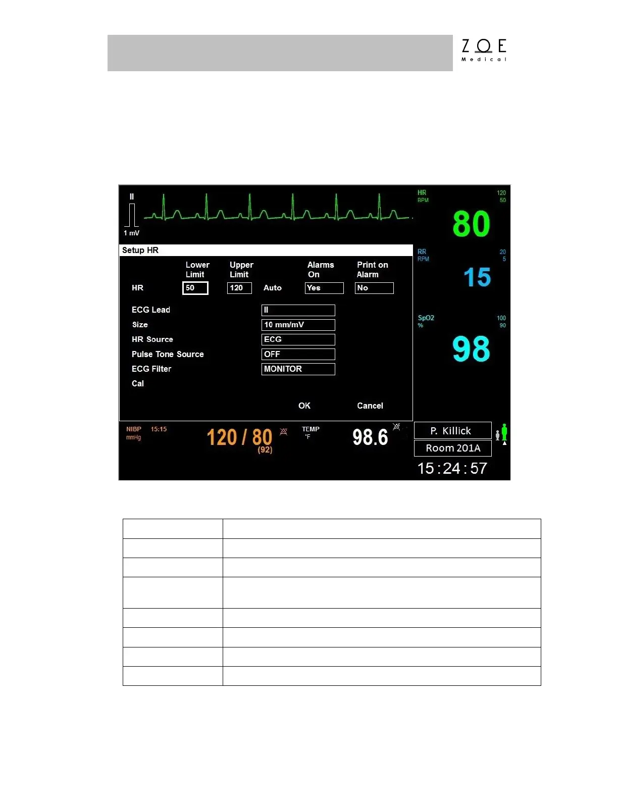 ZOE PPM3 - Parameter Menus; ECG and Heart Rate; Figure 31. Setup HR Menu