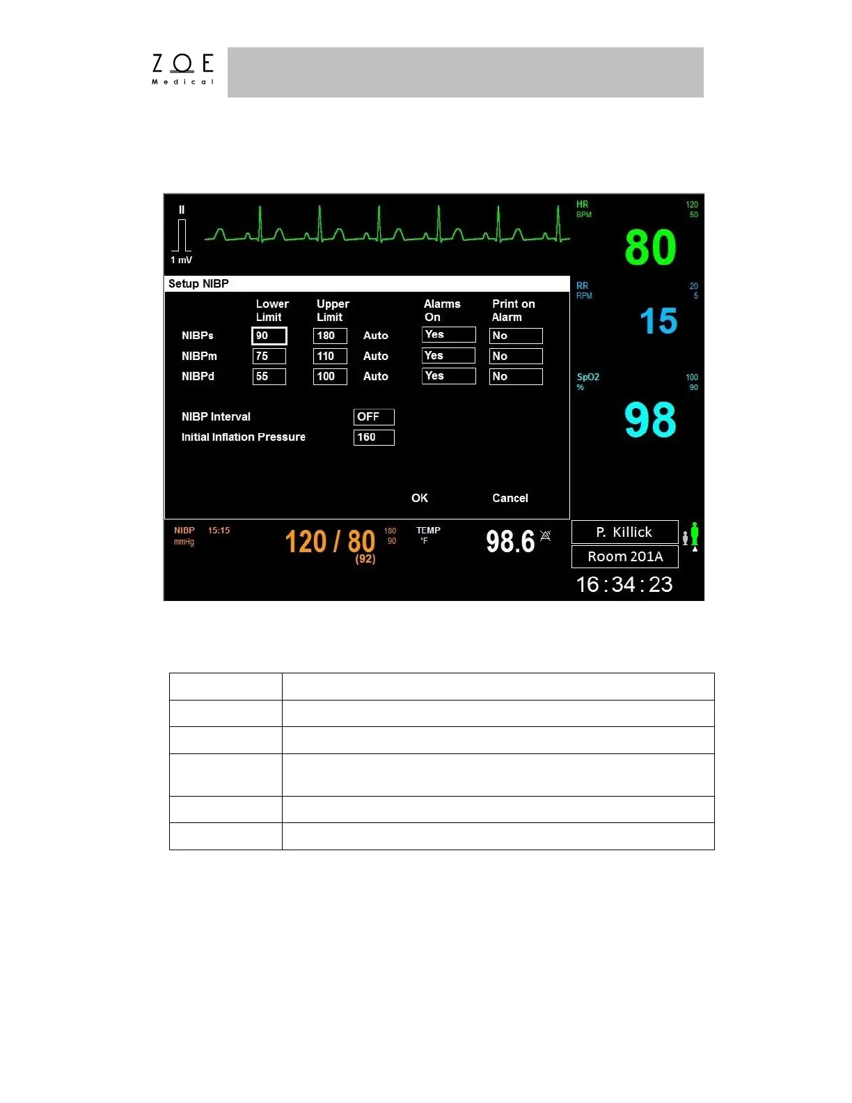 ZOE PPM3 - Non-Invasive Blood Pressure; Figure 35. Setup NBP Menu