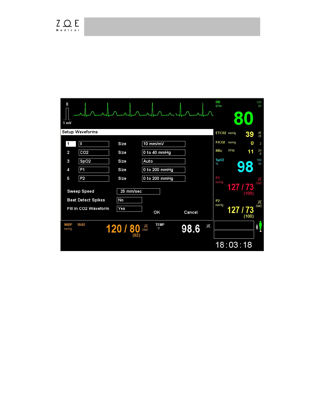 You may also choose the size (amplitude) of the invasive pressure waveforms.