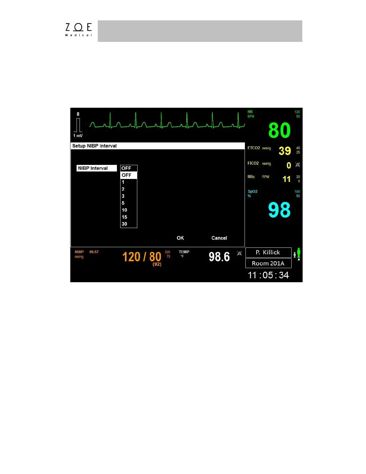 1. Press the NBP INTERVAL key to display the Setup NBP Interval menu.