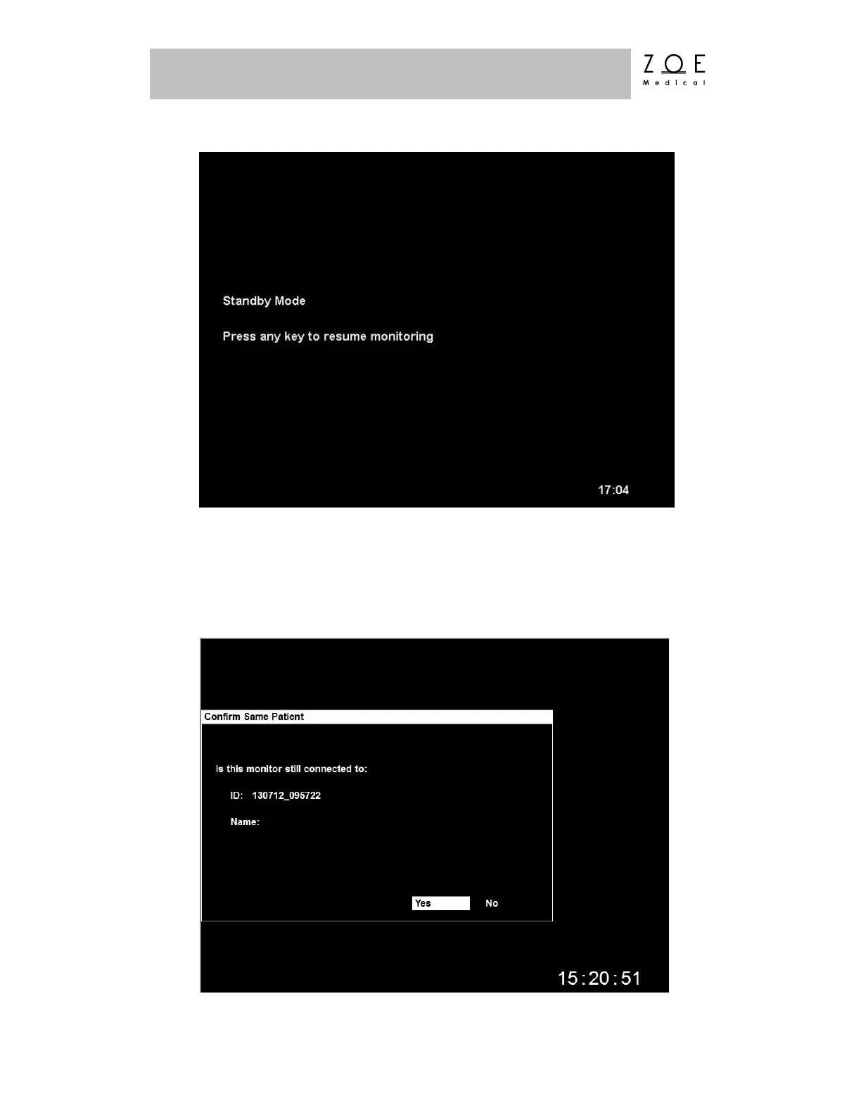 When a key is pressed the previous patient must be confirmed. If you select