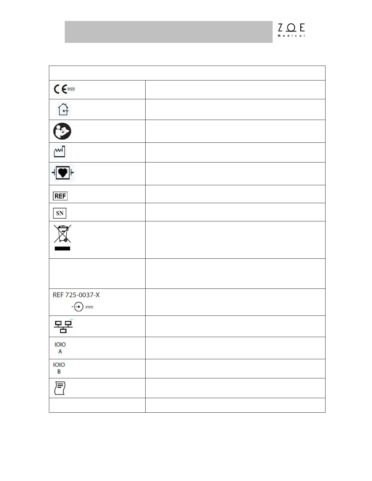External AC/DC power supply; only use Zoe Medical P/N 725-