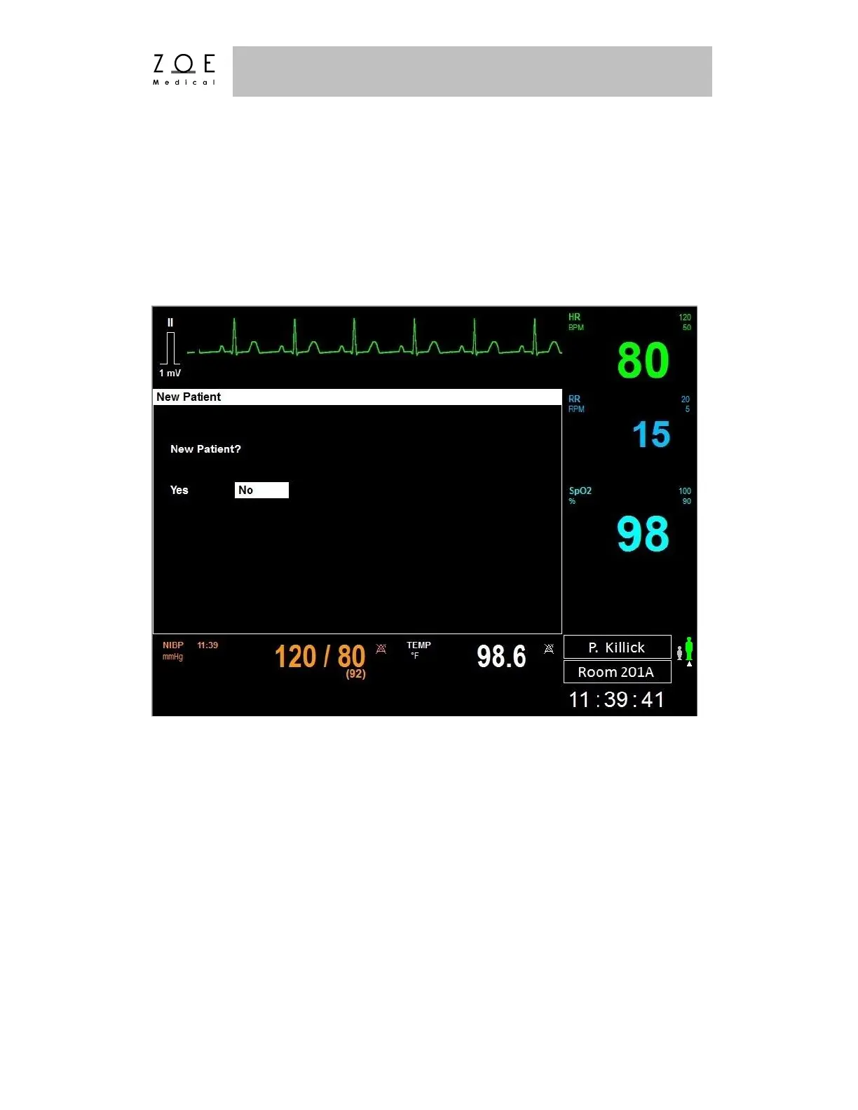 The New Patient Screen follows the Startup Screen. If a patient has previously