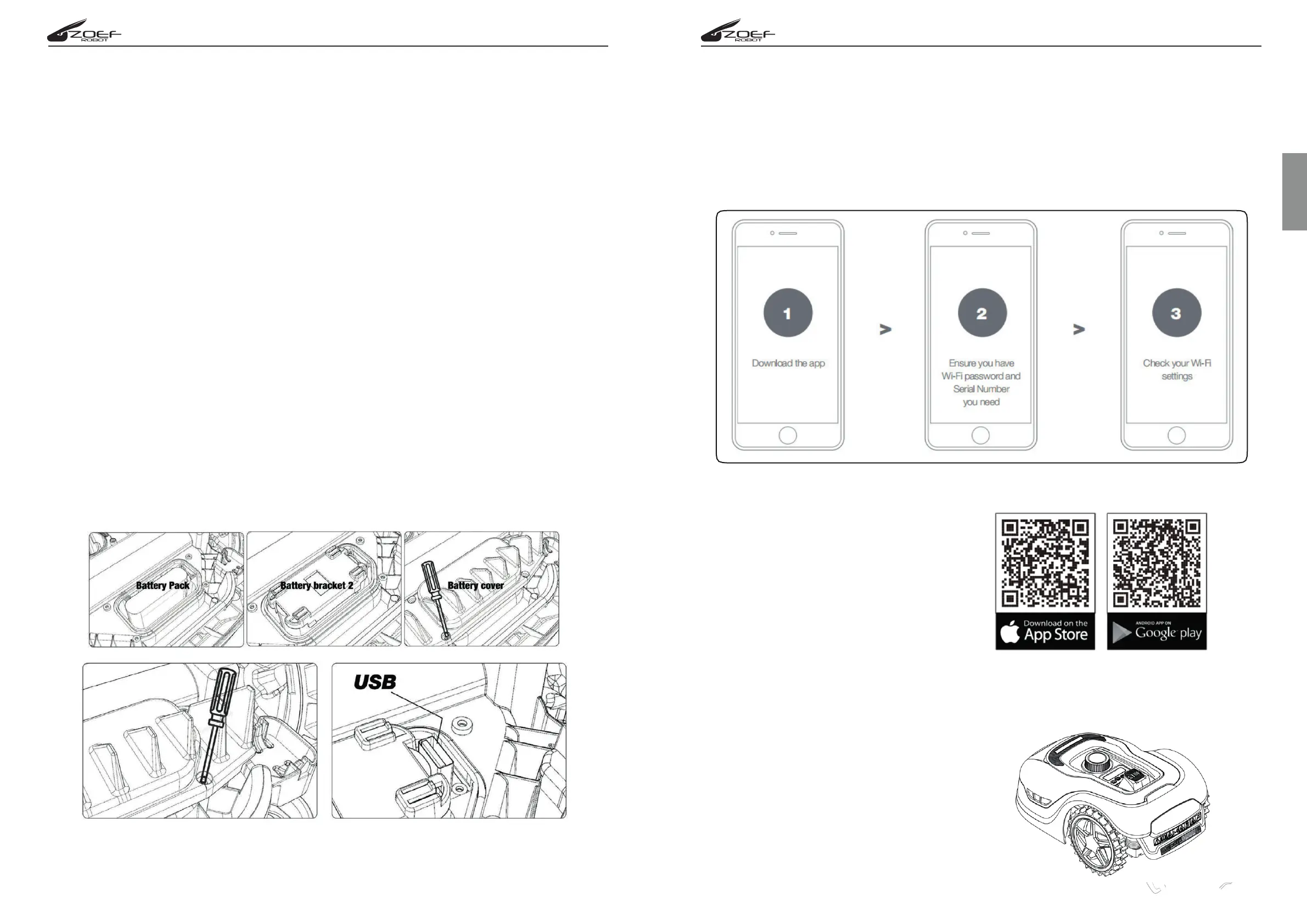 l'étiquette sous le hayon du robot tondeuse.