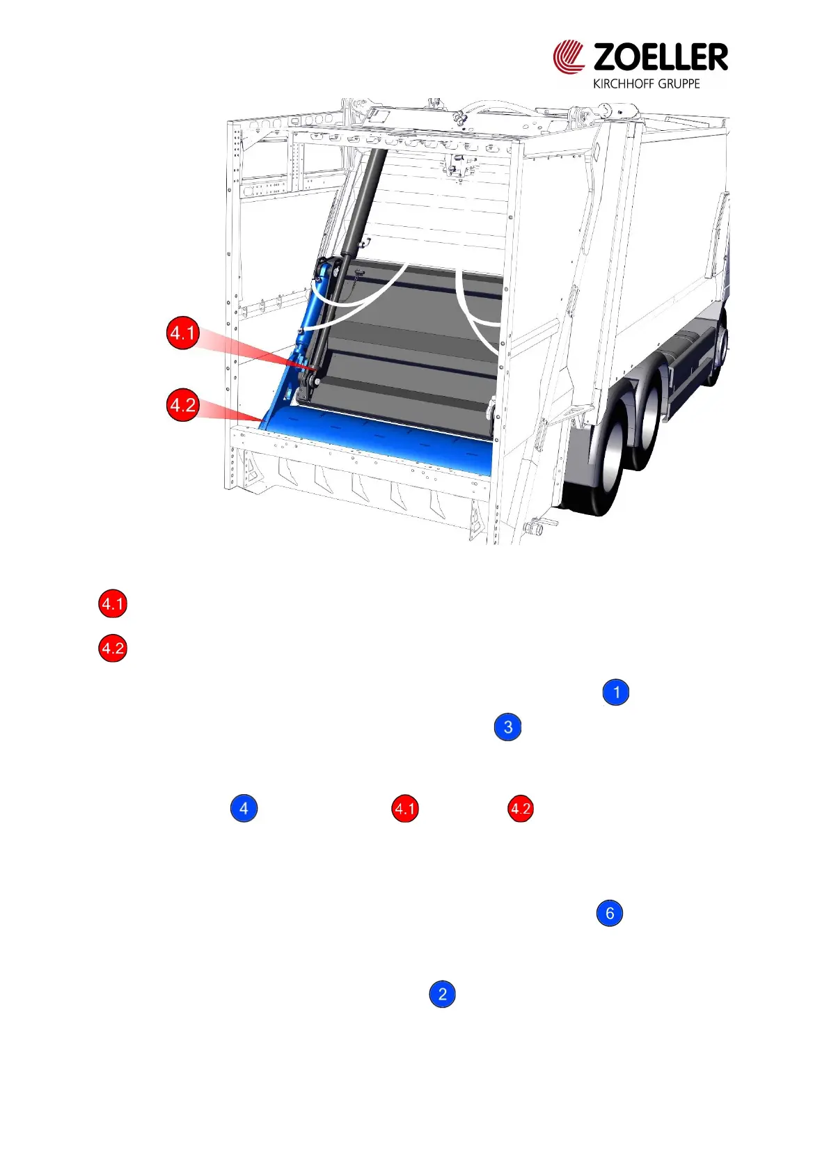 points of rotation. When emptying the body, the tailgate is lifted by hydraulic cylinders. The