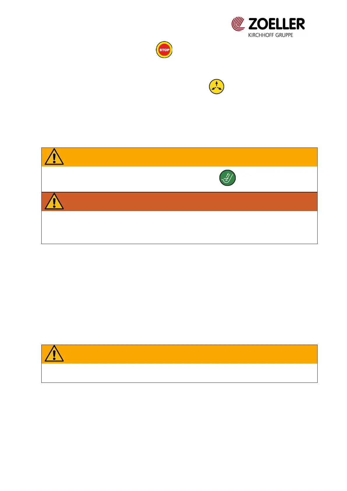 In an emergency, use the emergency stop button! To restore vehicle functions after pressing the