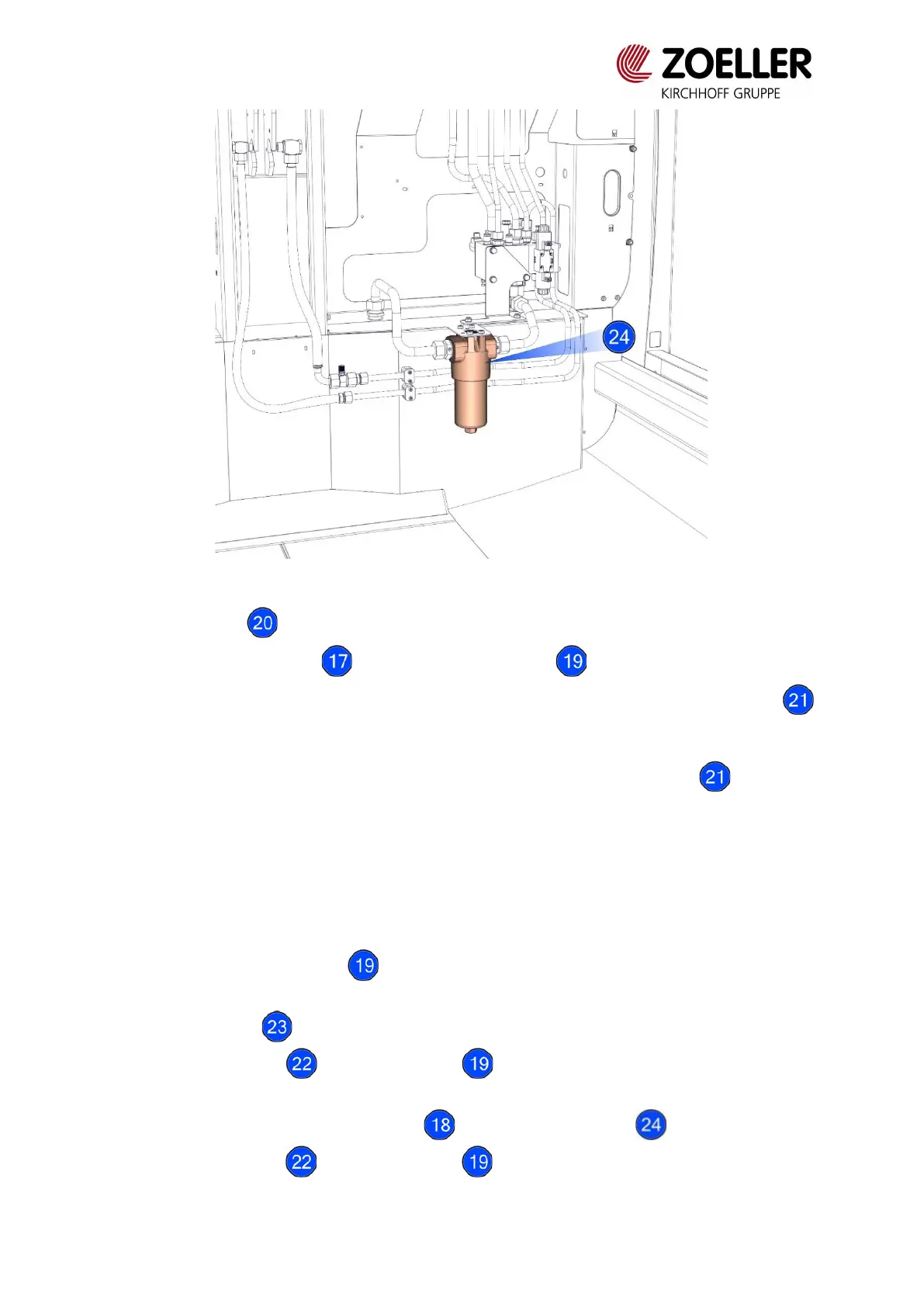 o Changes cartridges of return filter and high-pressure filter