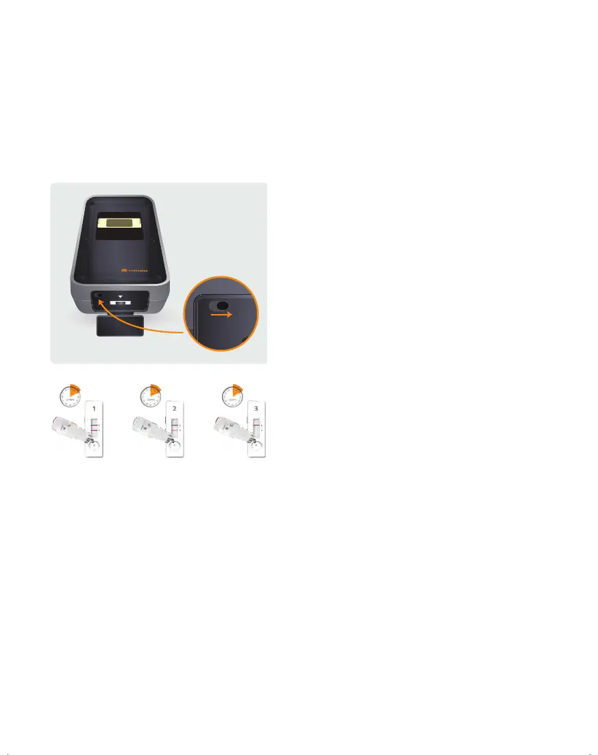 6. As the sample moves up the test cartridge