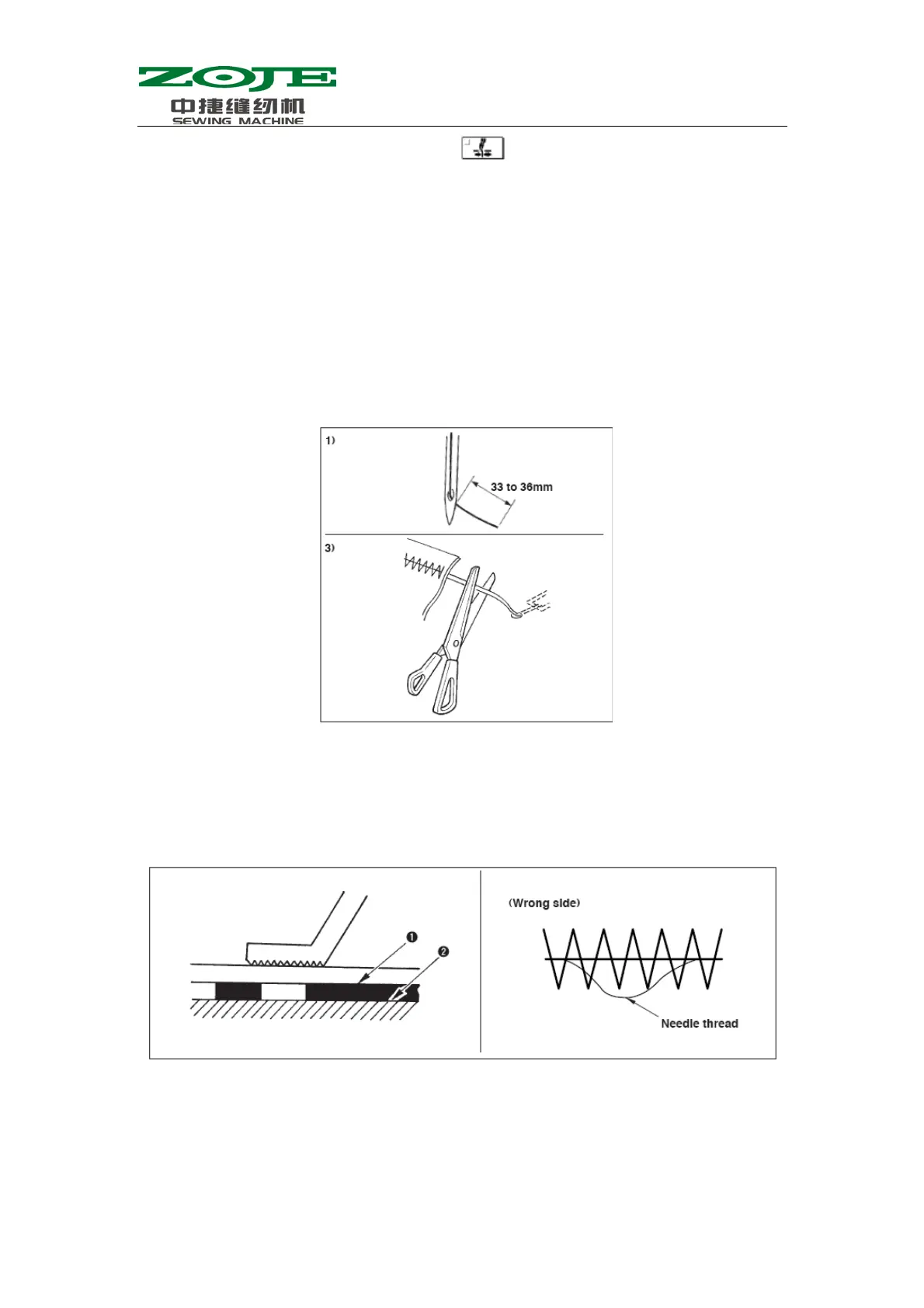 1) The standard length of needle thread in thread-catching shall be 33~36mm.