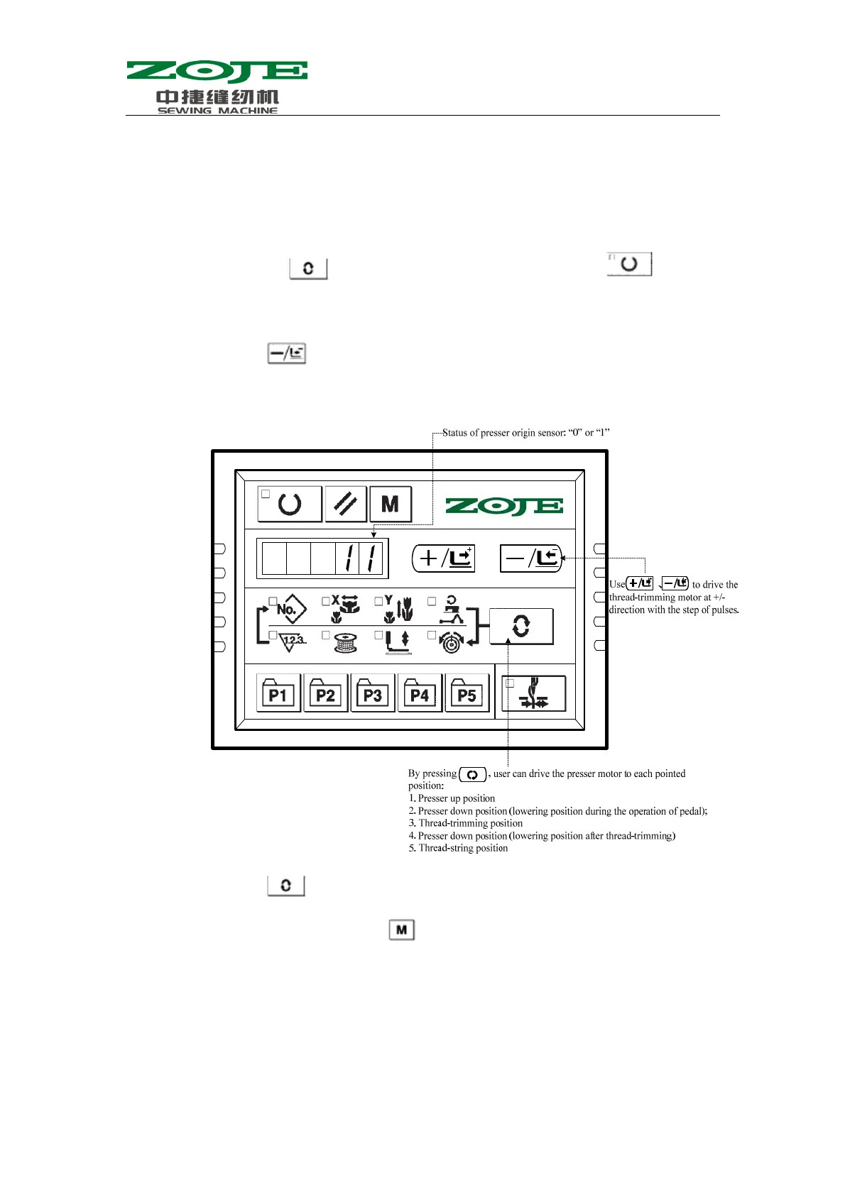 from “00”, it means the presser sensor is normal. If not, please adjust the position of the presser