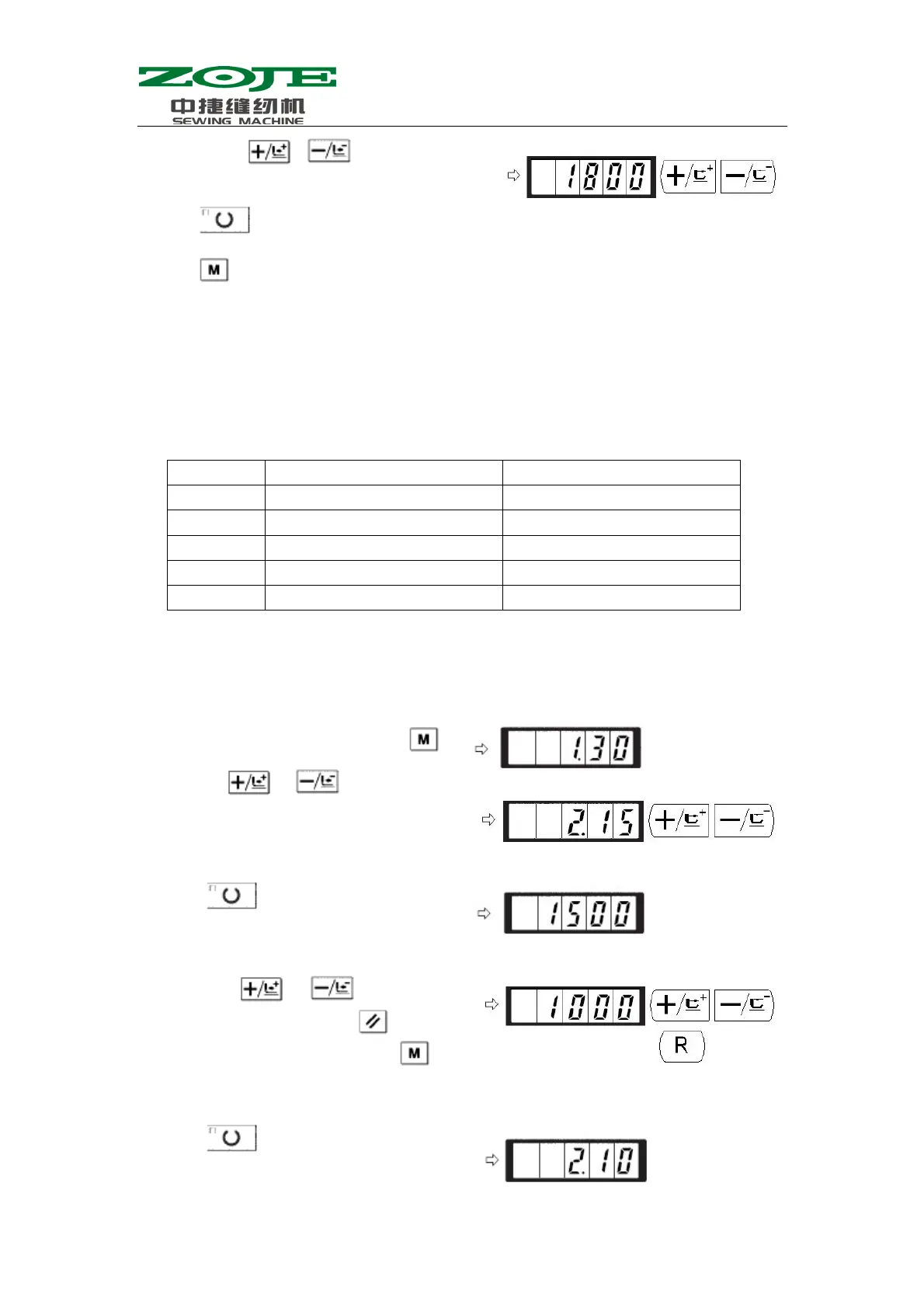 4)Press to save the value and turn off the Sewing LED.