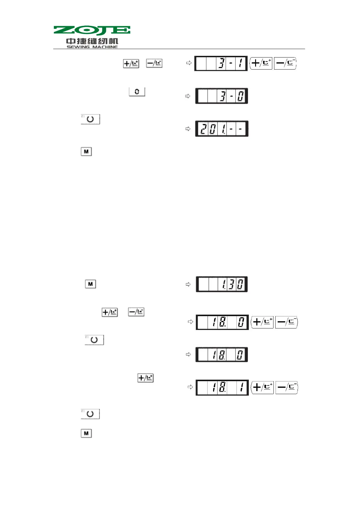 5)Press to save the set value and turn off the Sewing LED