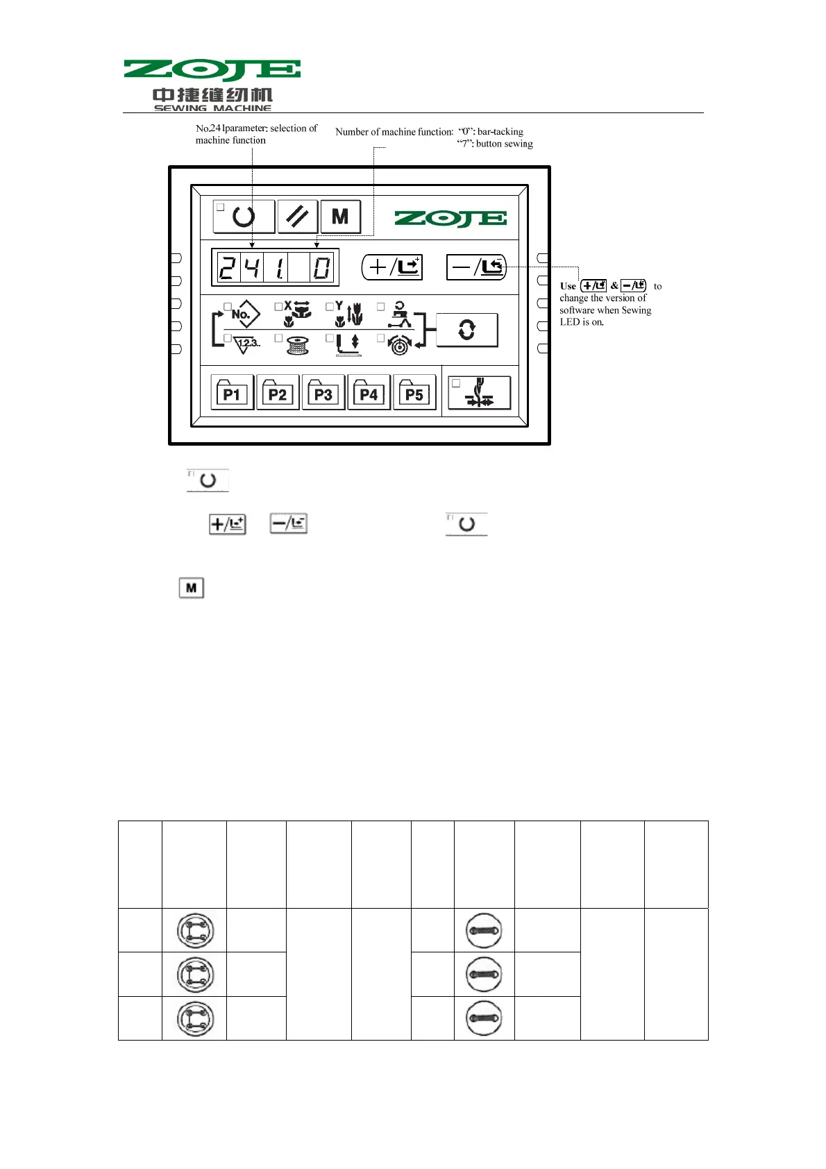 to turn on the Sewing LED. After that, user can change the function number to
