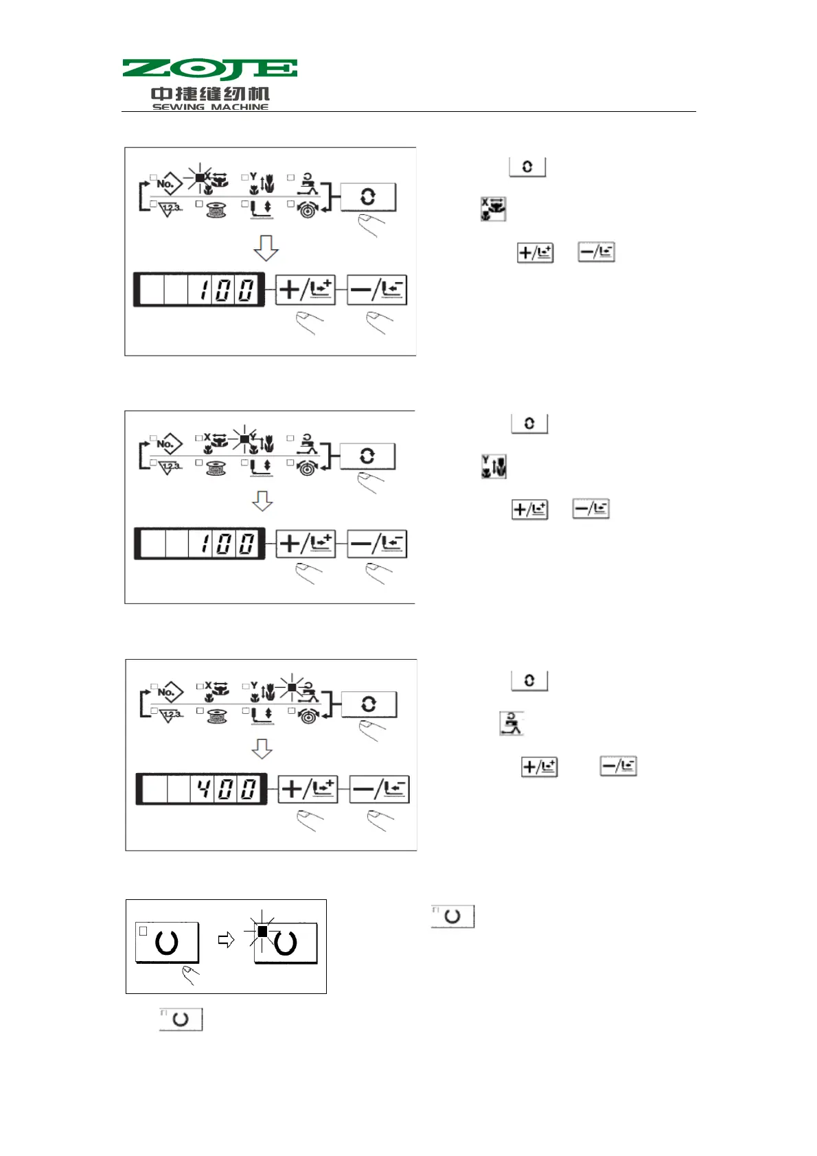 (2) After the presser goes up, the Sewing LED is on.
