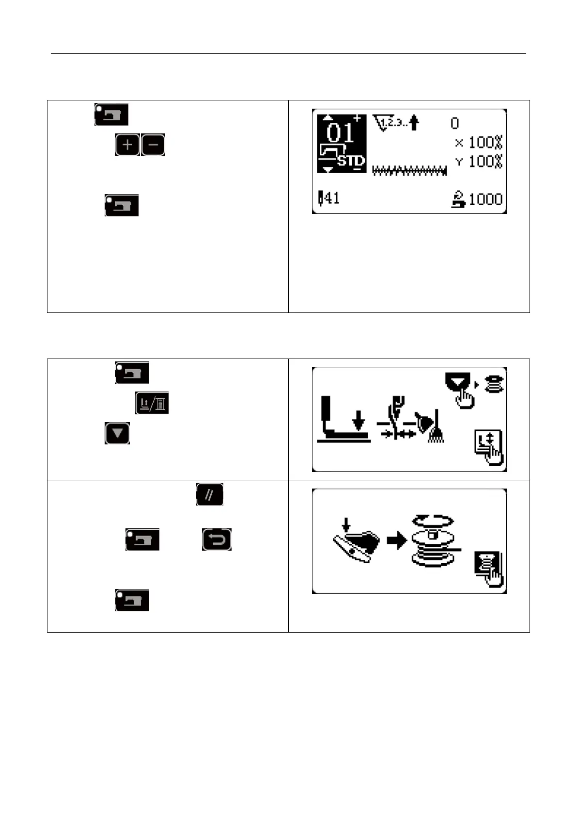 2) 按压脚卷线键 ,选择下降压脚。