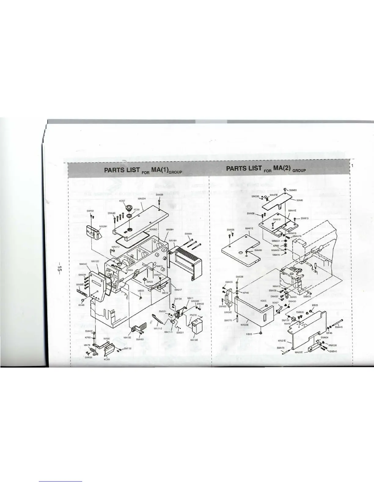 PARTS LIST FOR MA(1