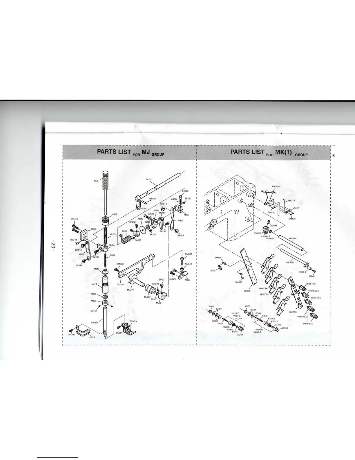 ZOJE ZJ-E007 - Parts Lists: MJ to KW Groups; Parts List for MJ, MK, ML, MN Groups