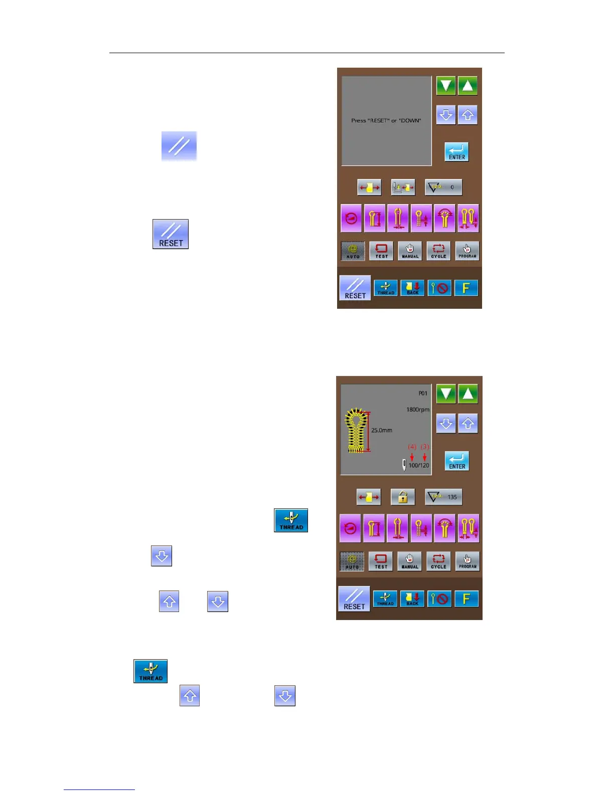 area shows “Press ‘Reset’ or ‘Down’”