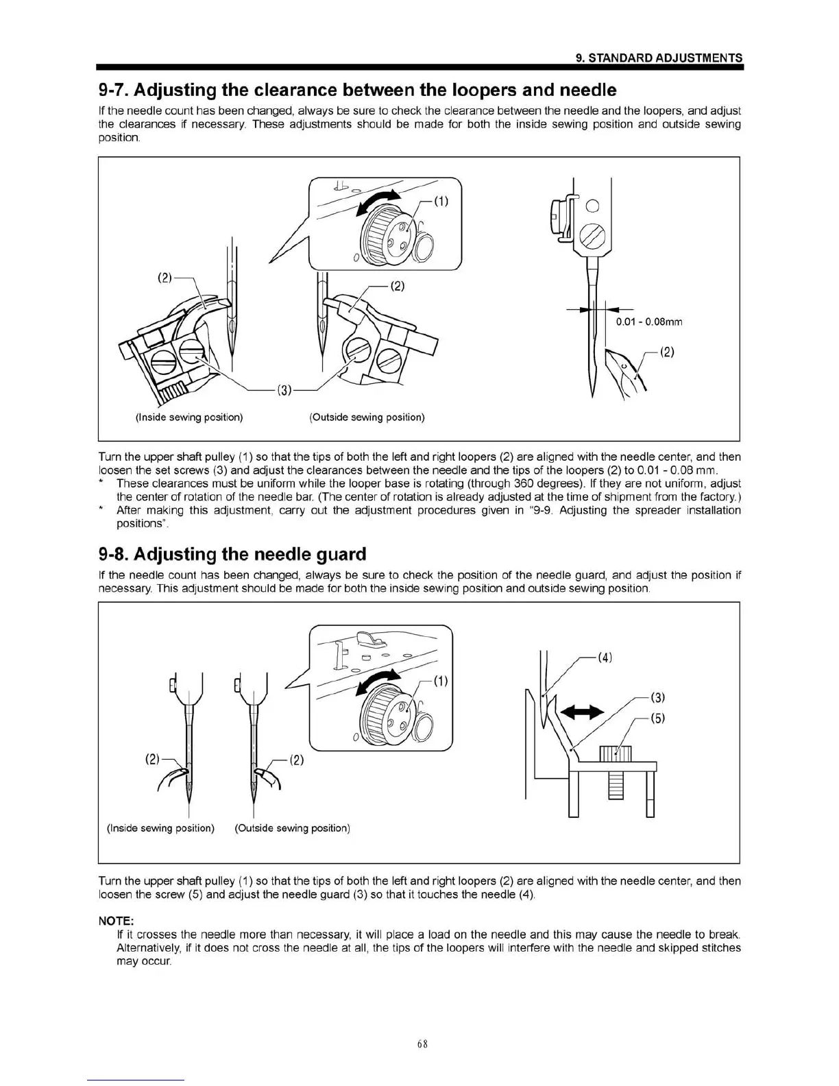 ZOJE ZJ5821 - Adjusting the Clearance between the Loopers and Needle; Adjusting the Needle Guard