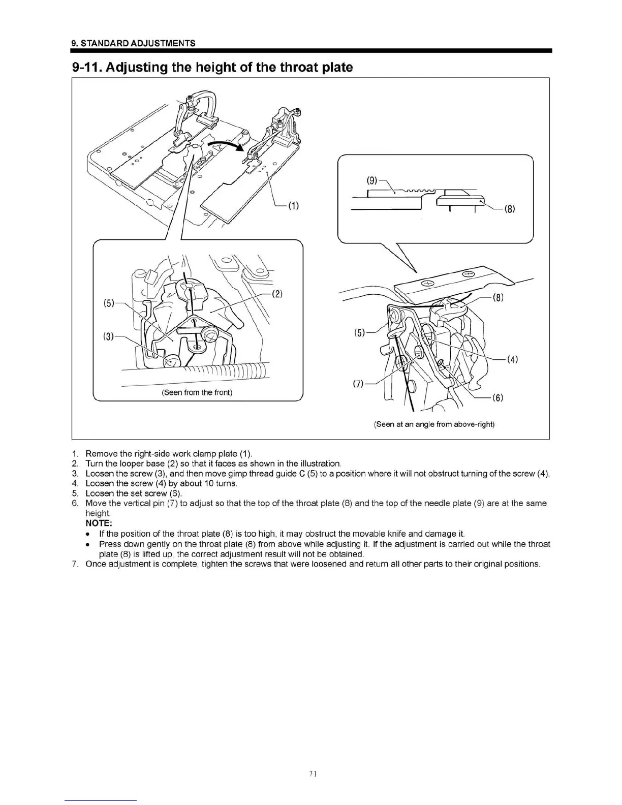 ZOJE ZJ5821 - Adjusting the Height of the Throat Plate