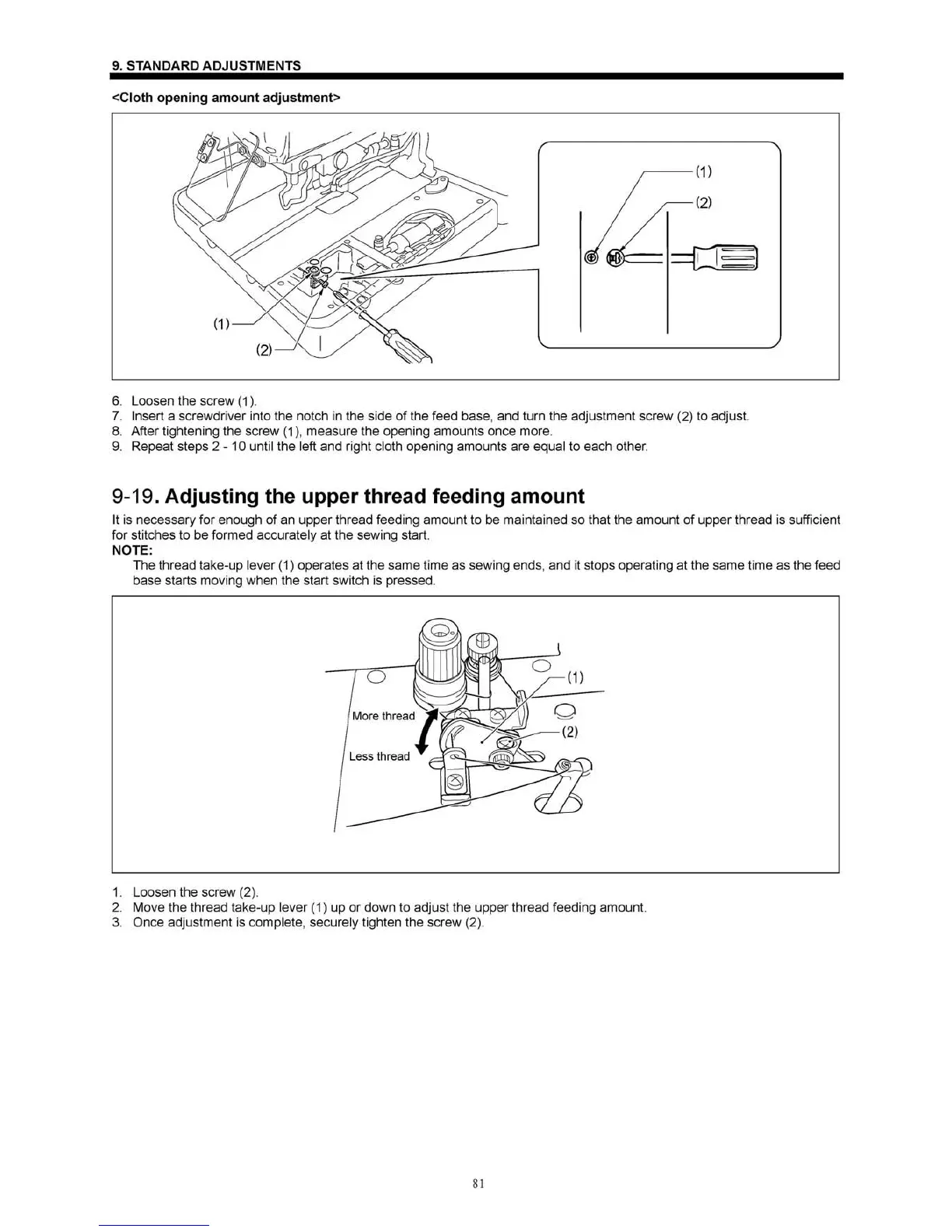 ZOJE ZJ5821 - Adjusting the Upper Thread Feeding Amount; Cloth Opening Amount Adjustment