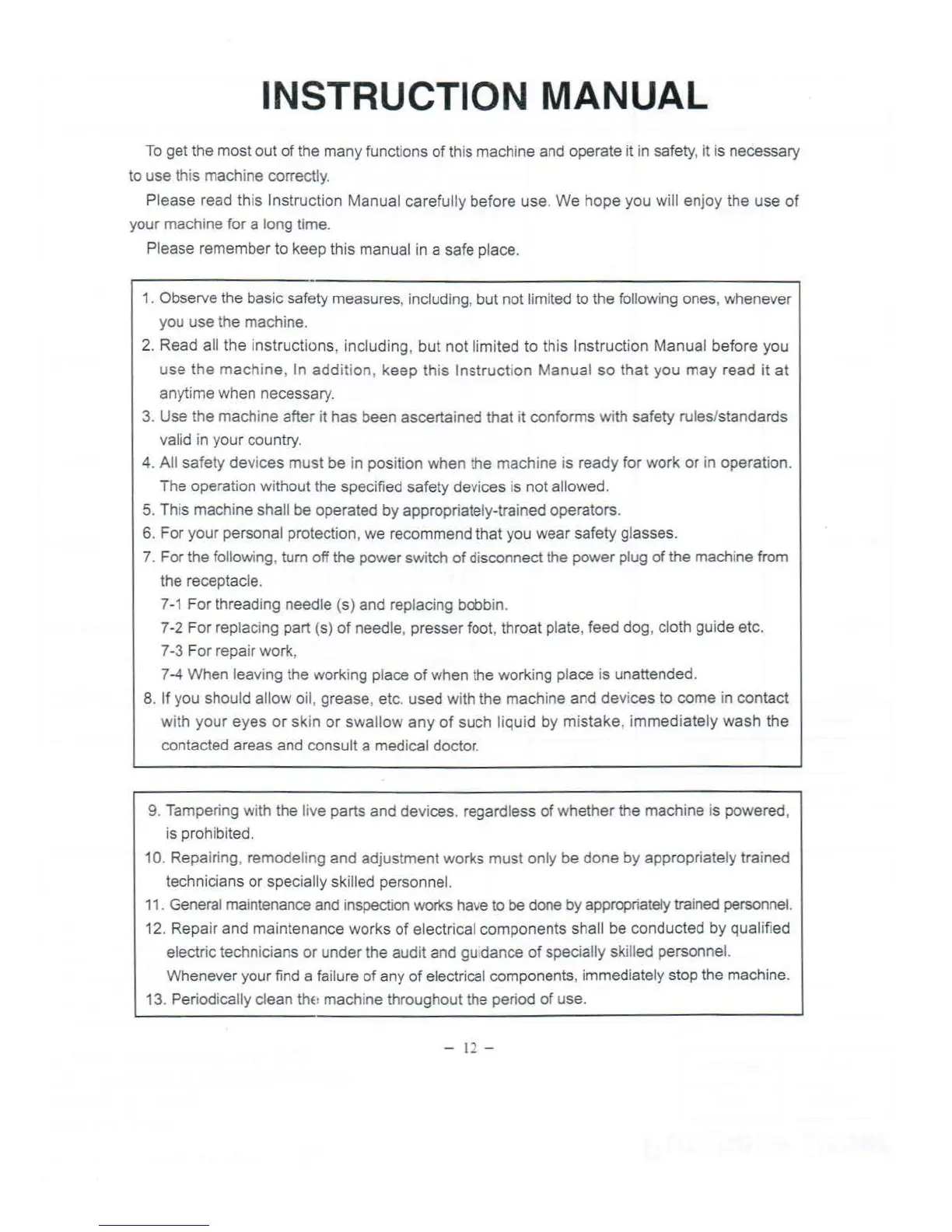 get the most out of the many functions of this machine and operate it in safety, it is necessary