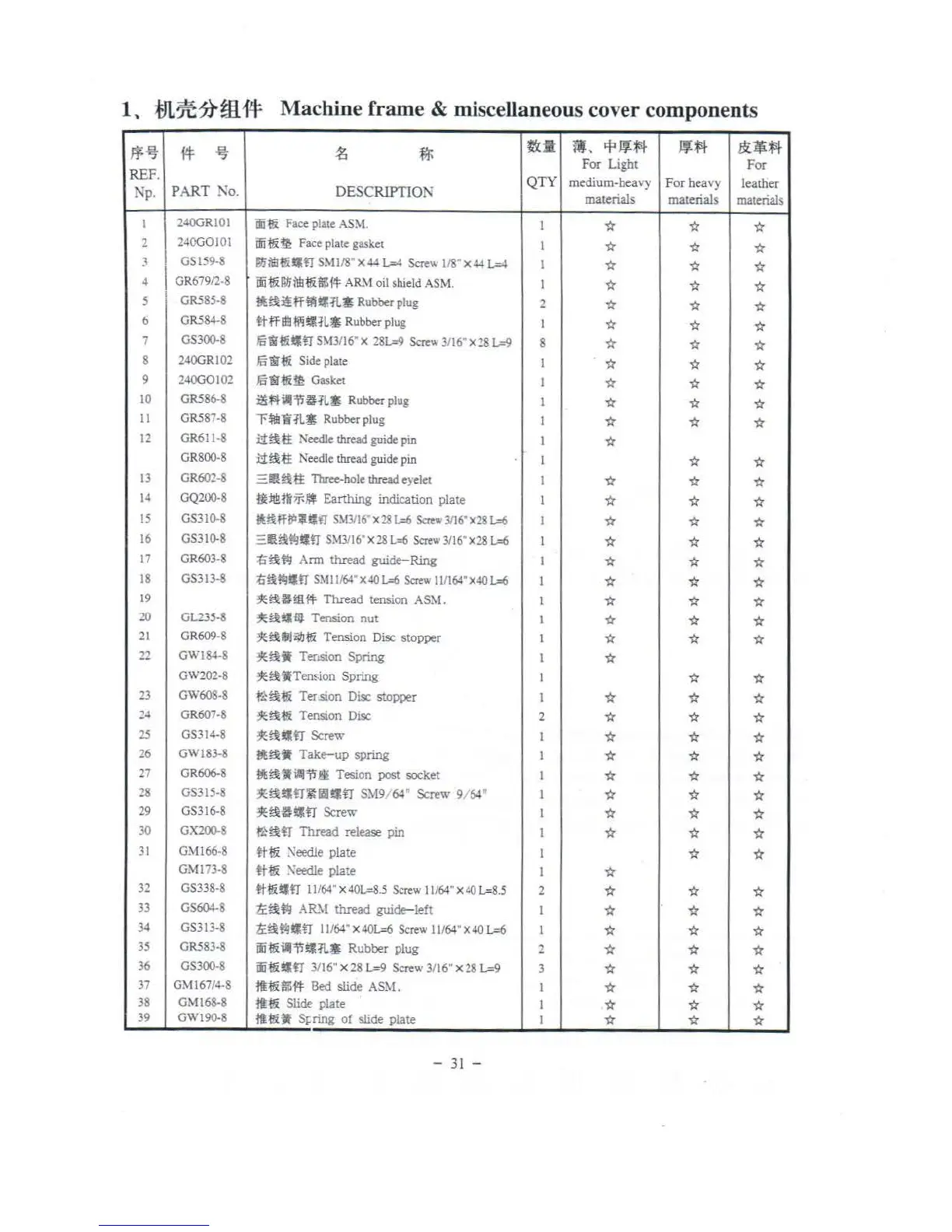 Machine frame & miscellaneous cover components