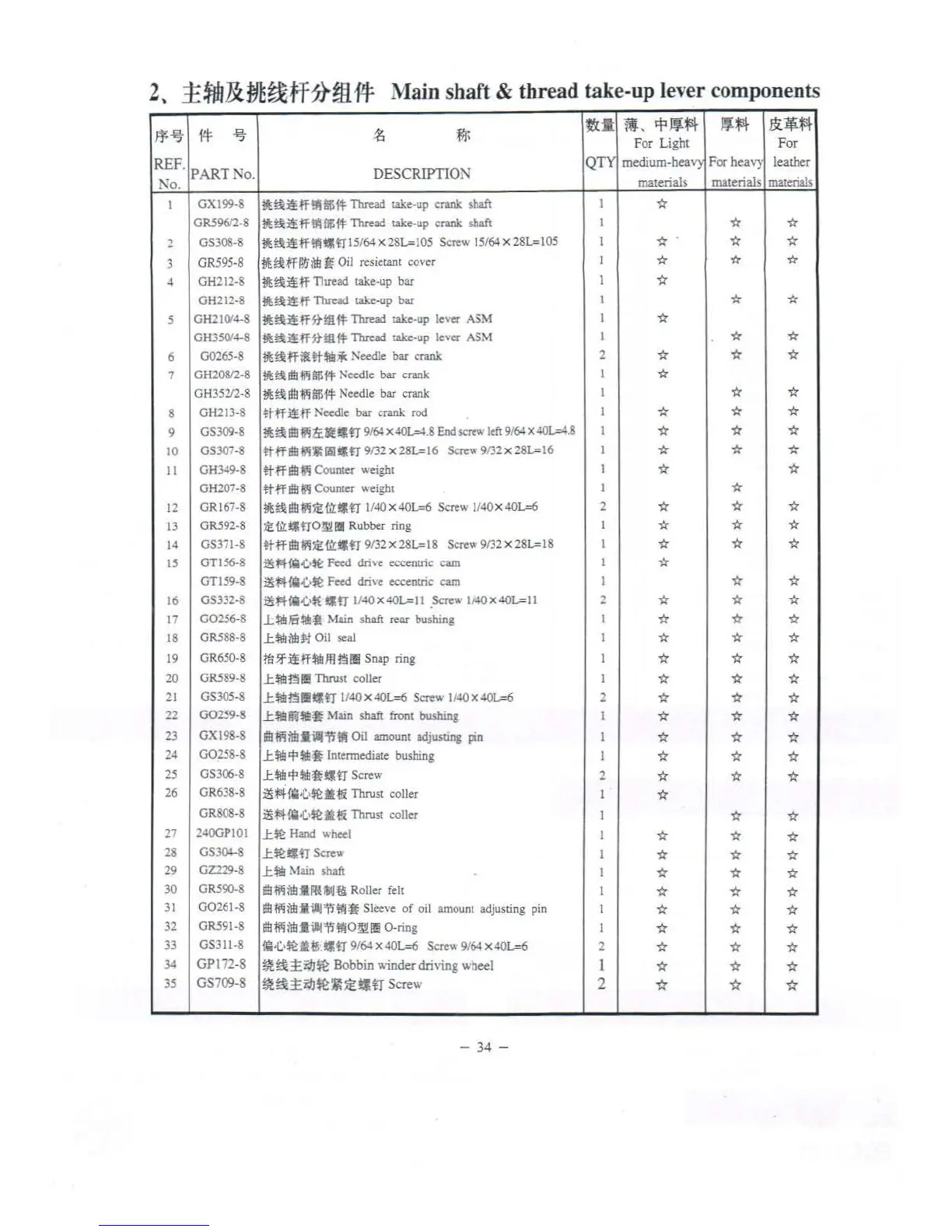 ZOJE ZJ8800A - Main Shaft and Take-Up Lever Parts