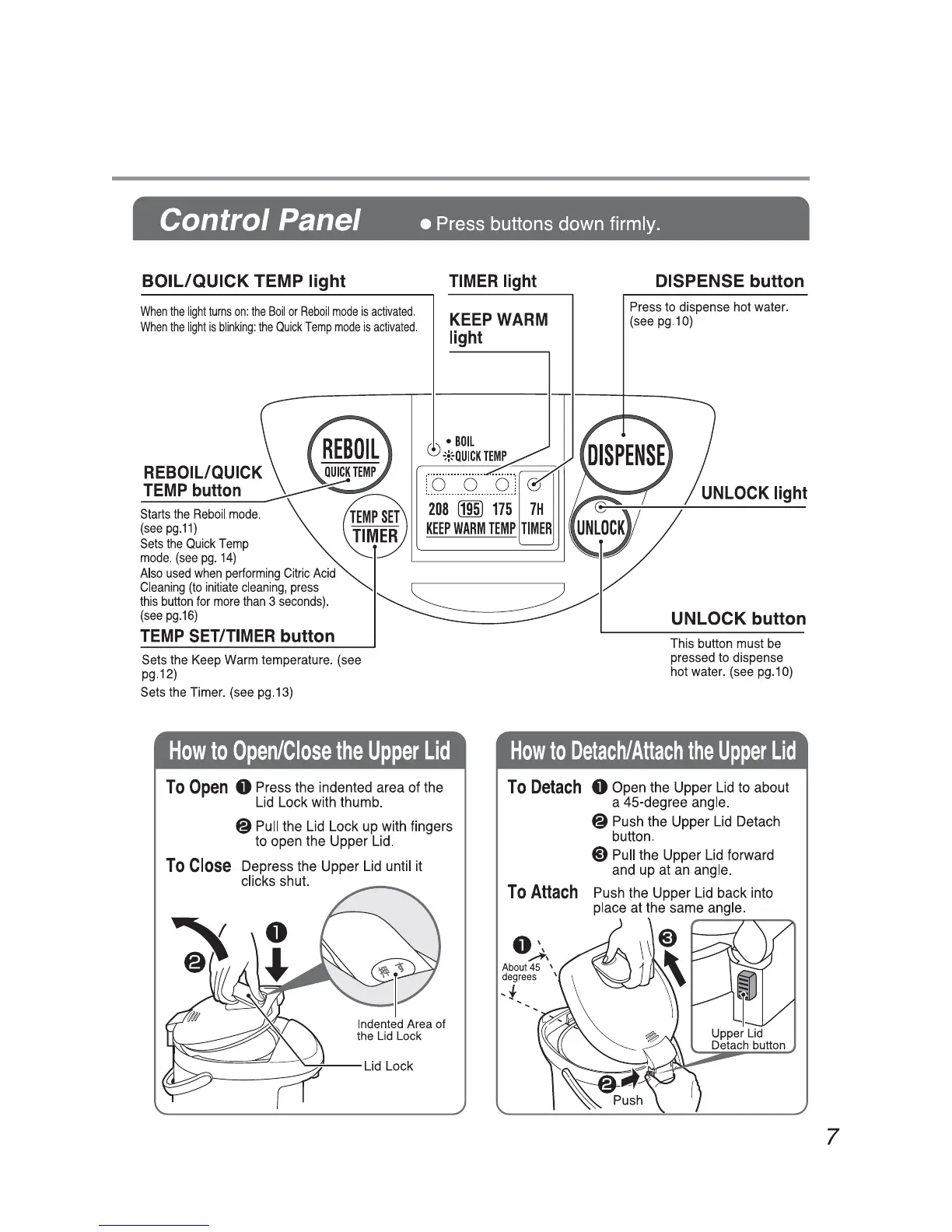 Zojirushi CD-LTC50 - Control Panel; Control Panel Overview; Upper Lid Operation