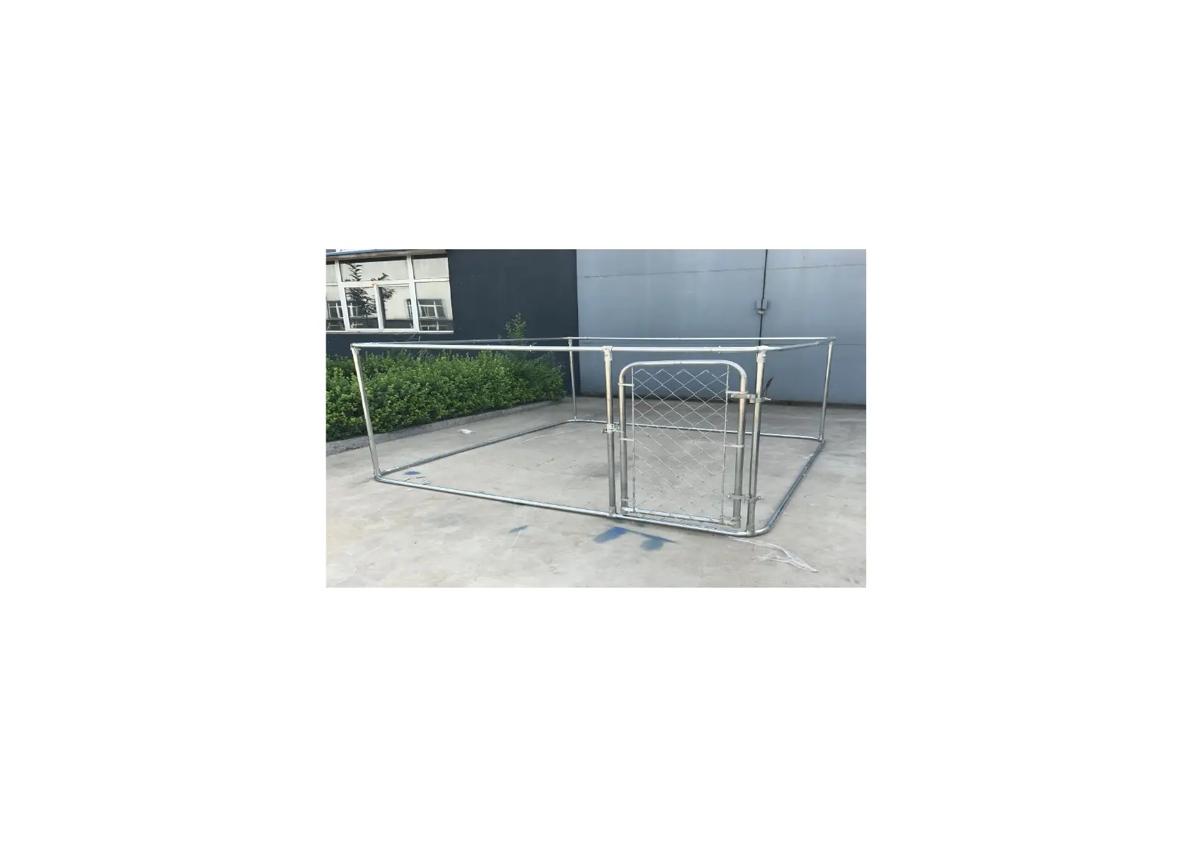 GB- Use the door hinges (and the big set of screws) to fix the door to the frame. Then install the security-lock on the dog run.