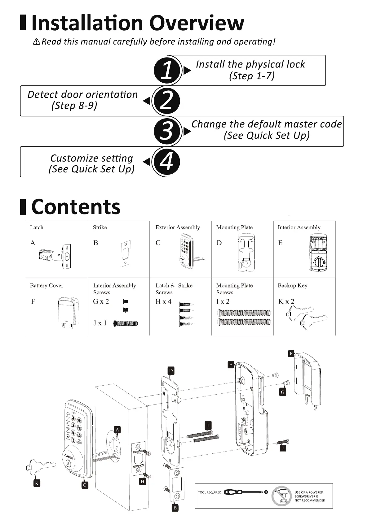 Zomoss DZS01 - Installation Overview; Physical Lock Installation; Door Orientation and Setup