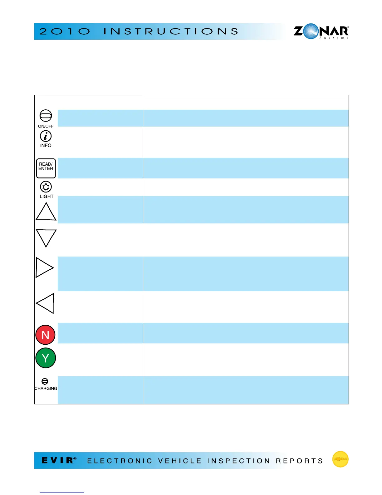 Power button • Turn the Zonar 2010 on/off