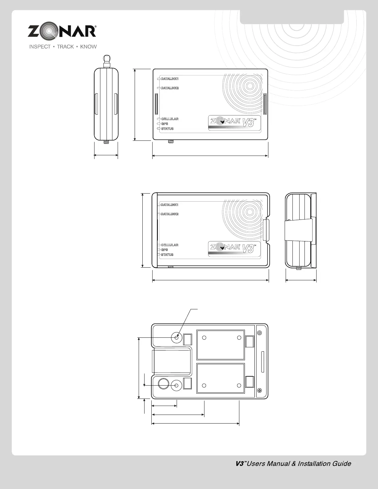 Zonar V3 - V3 Unit Dimensions; V3 Device Dimensions; V3 Mounting Plate Dimensions