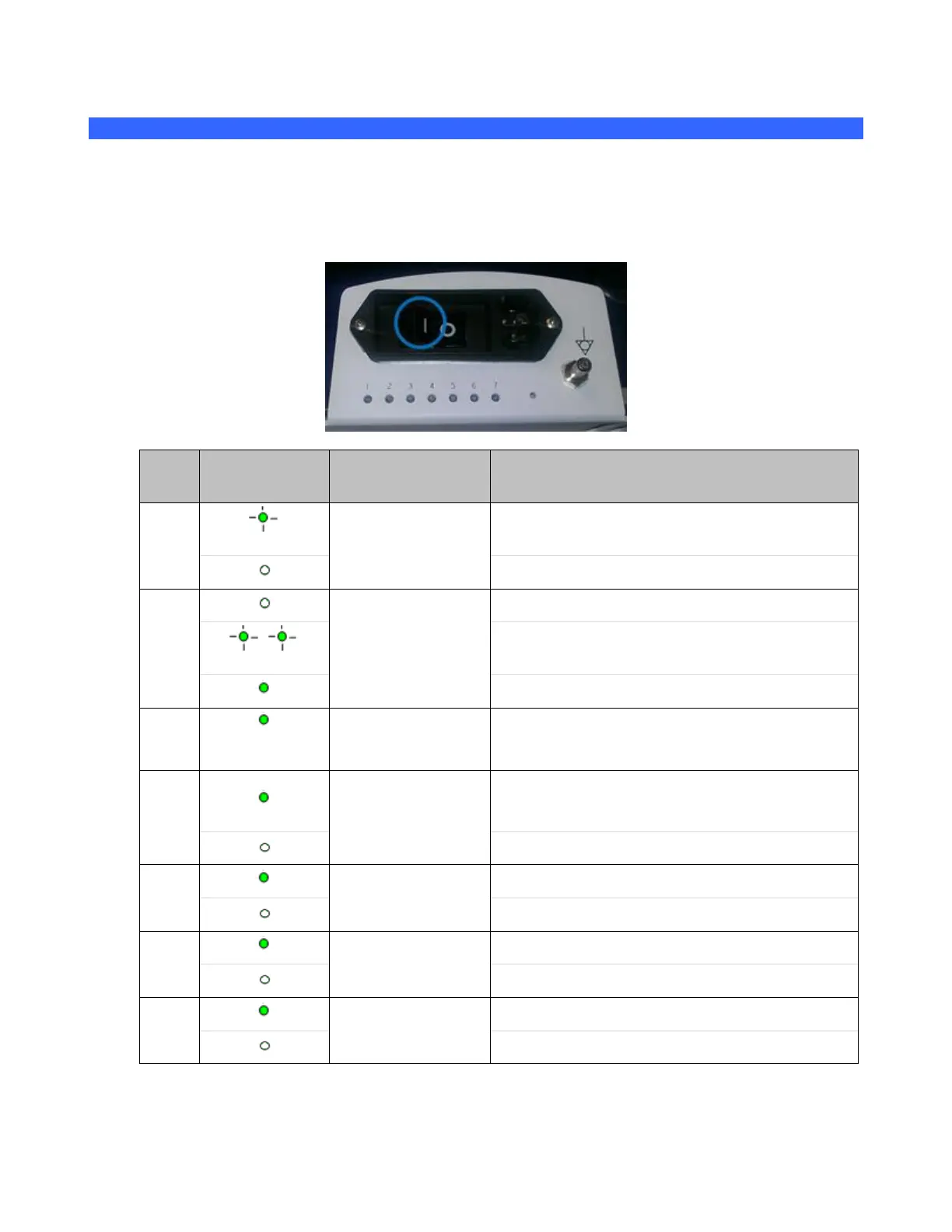 The seven (7) system status indicator lamps located on rear of the system (panel just above the main