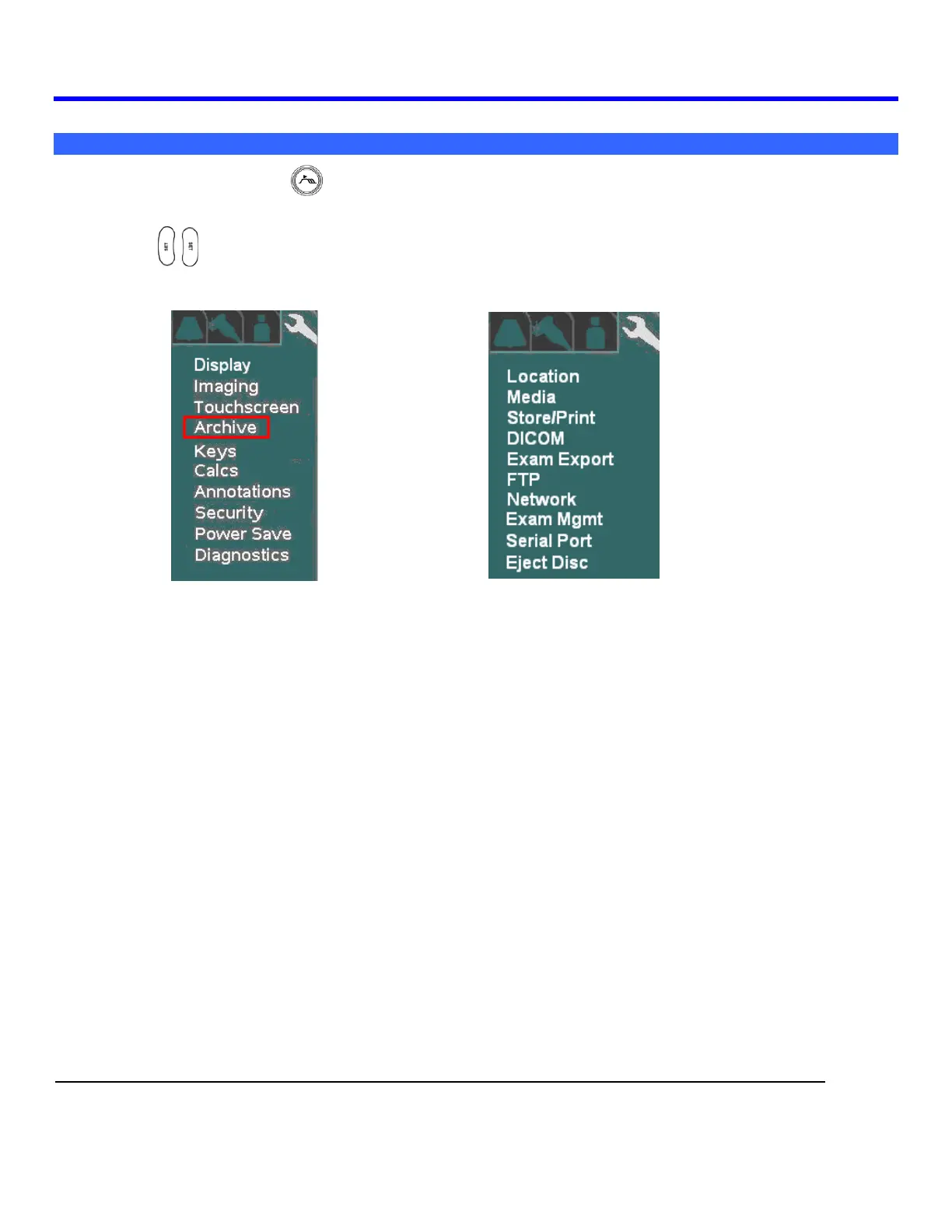 SYSTEM SETUP Sub-Menu ARCHIVE Sub-Menu