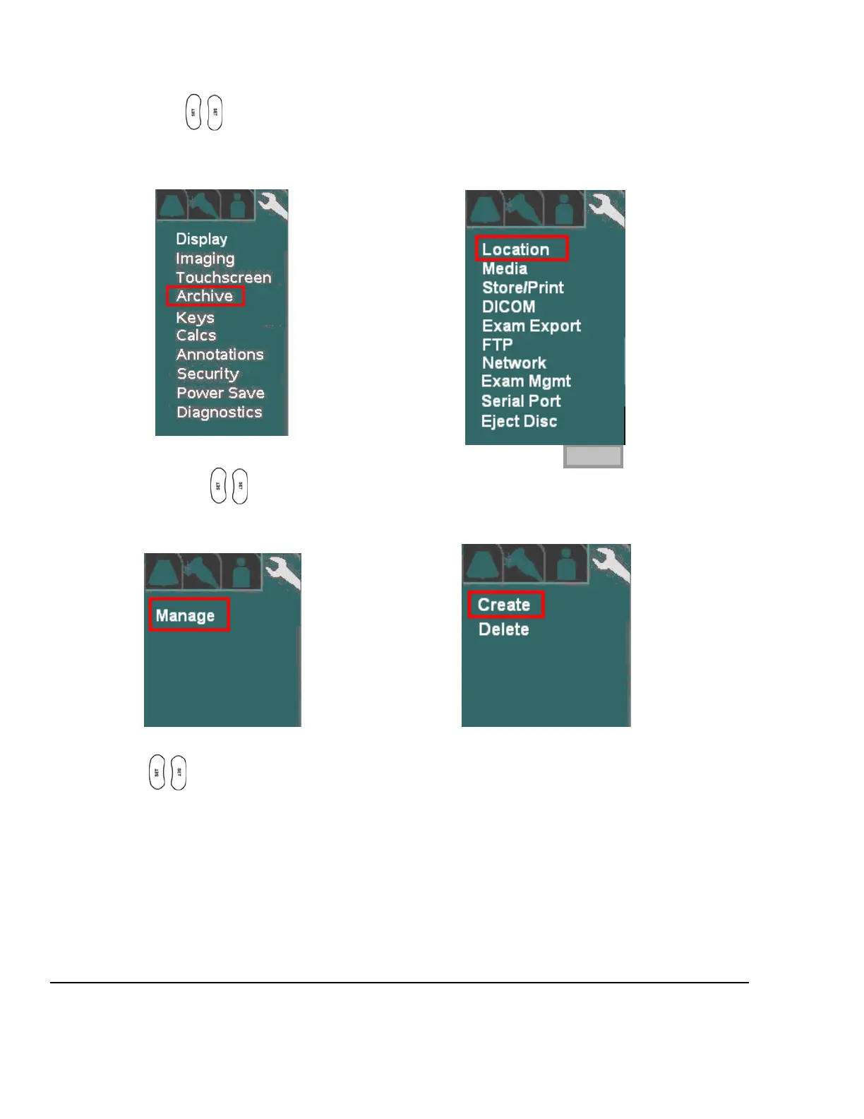LOCATION Sub-Menu MANAGE Sub-Menu