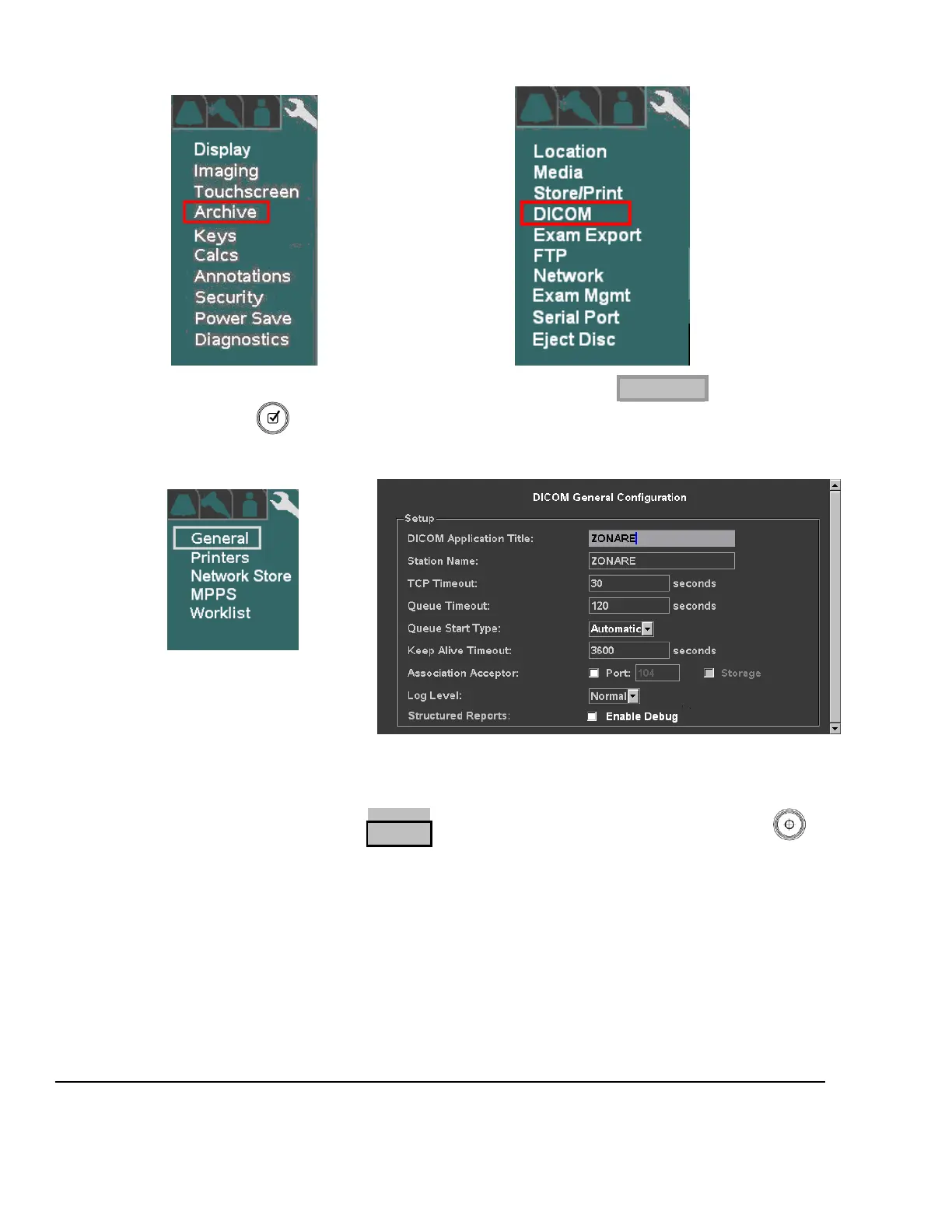DICOM Sub-Menu DICOM GENERAL Sub-Menu