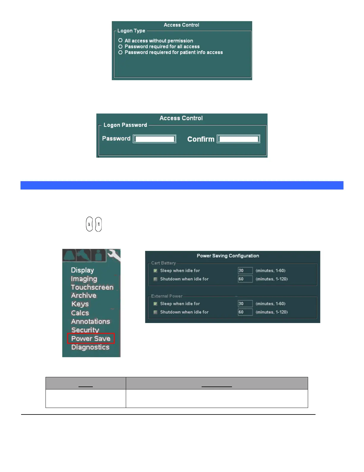 “Power Save” Setup Menu
