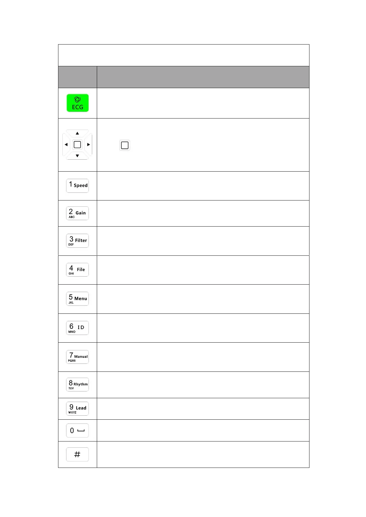 Character input key, shortcut function: Recording ECG waveforms in