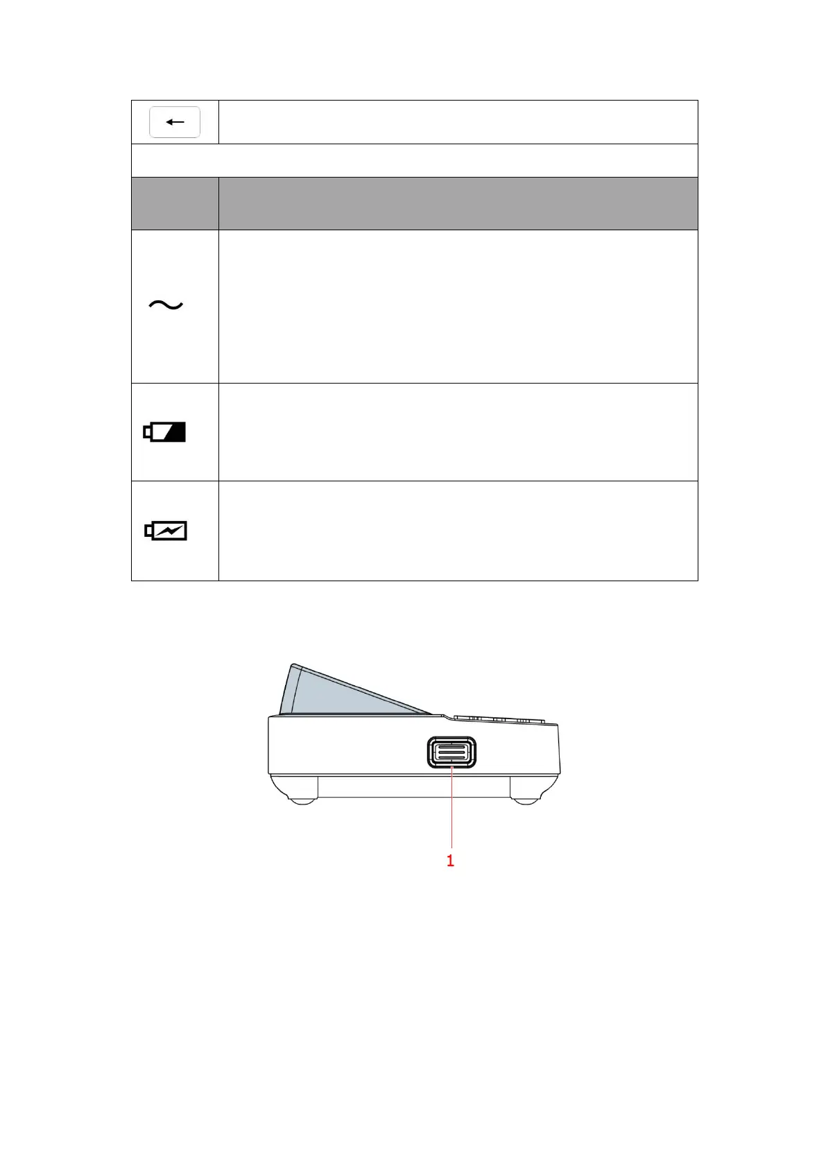 Off: No battery installed or battery fully charged