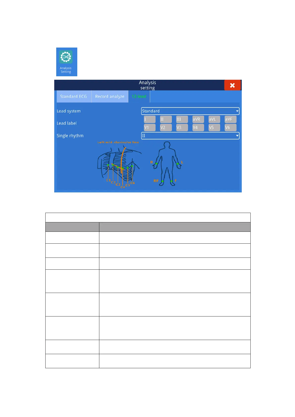 Select “ ” option and then select 12 lead, click and enter into setting interface.