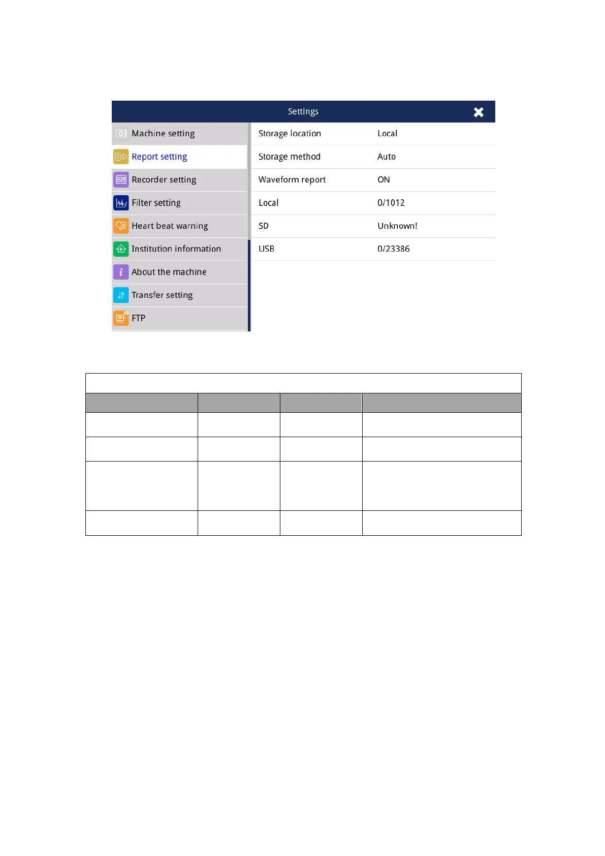 Zoncare U30 - General-Report Setting