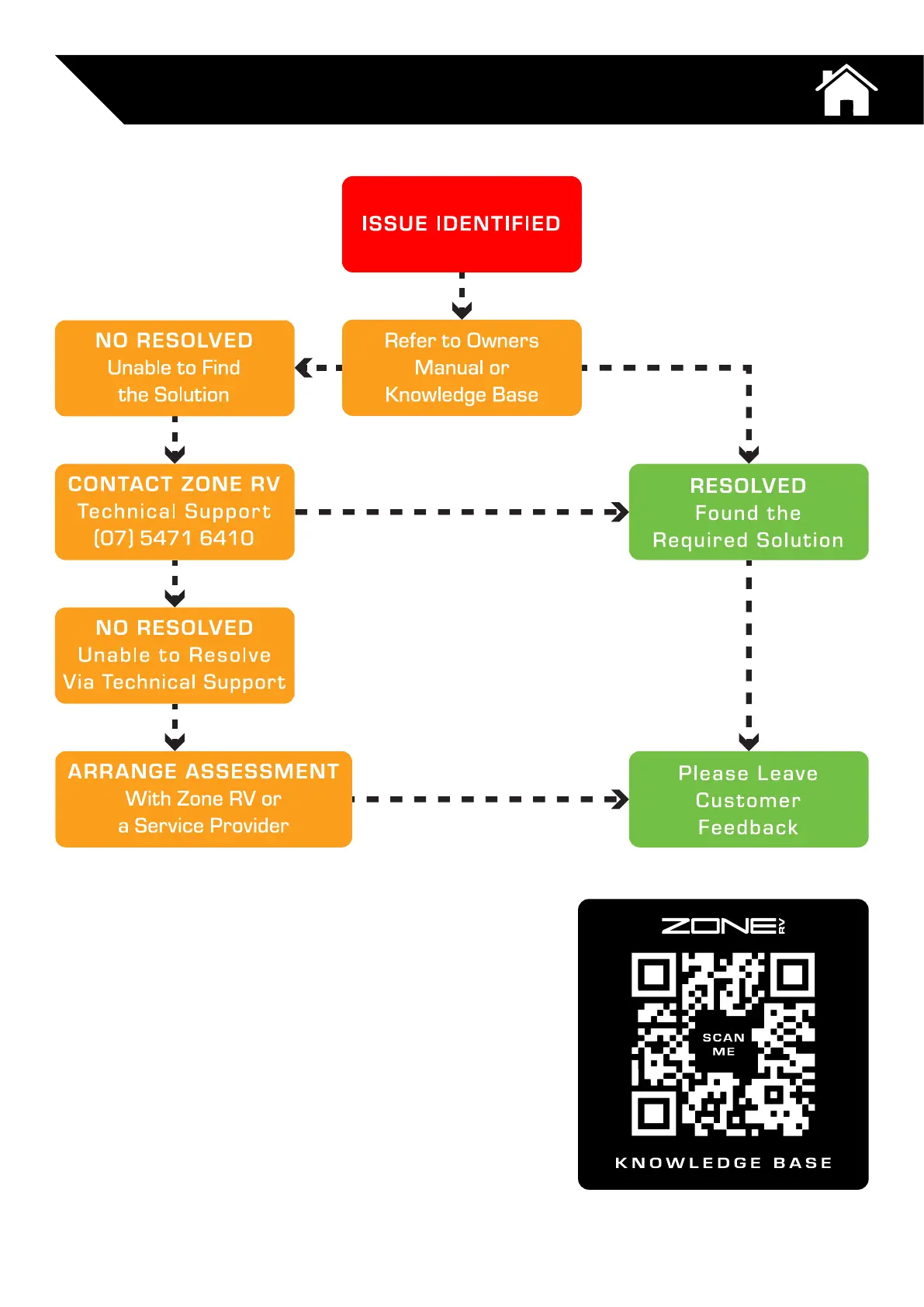 ZONE RV Expedition - After-Sales Service and Support; Issue Identification and Resolution Flowchart; Contacting Zone RV Technical Support; Zone RV Service Department Contact Details