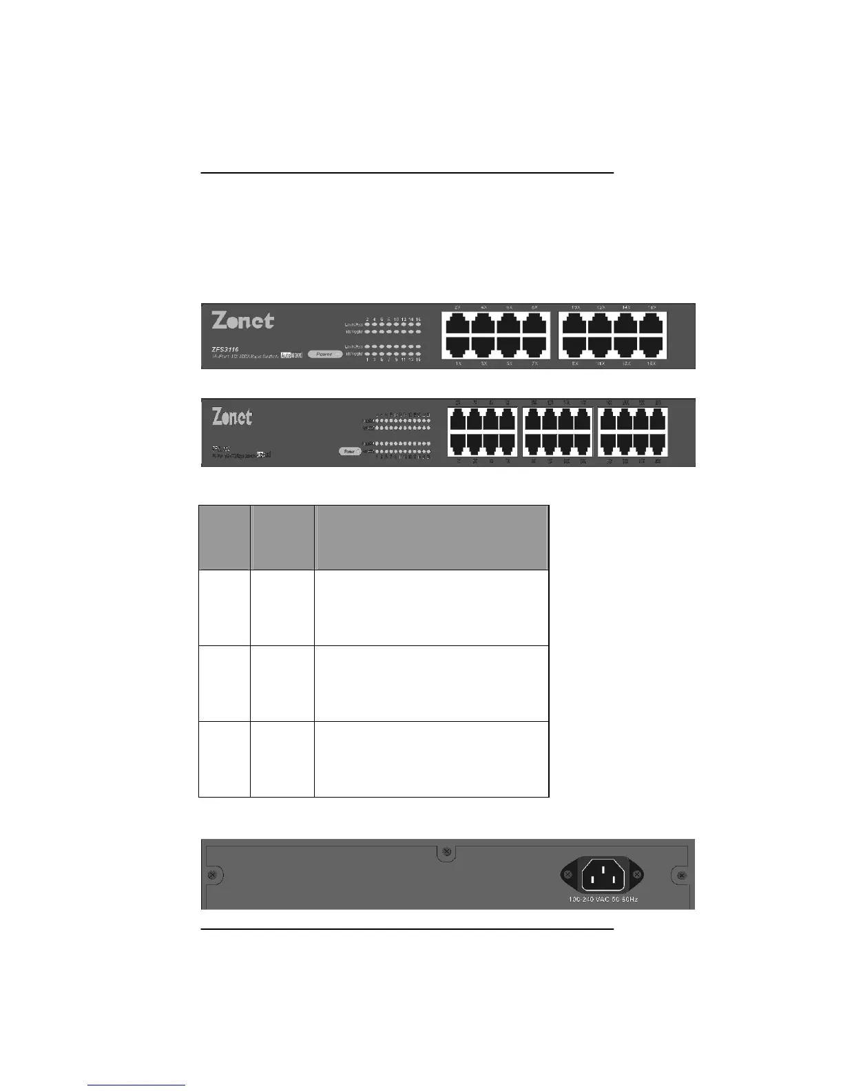 Zonet ZFS3124 - Ethernet Switch; LED Definition