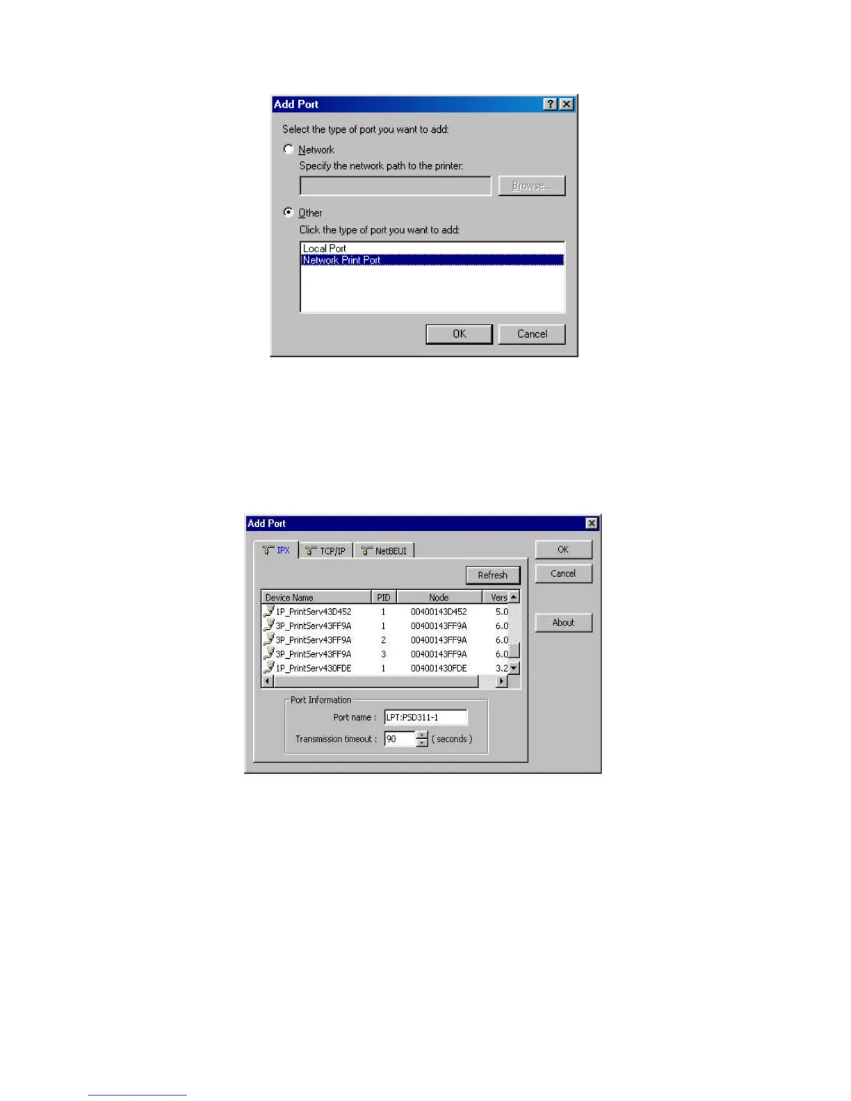 of the Node ID, located on the back of the print server unit). Select one printer server port