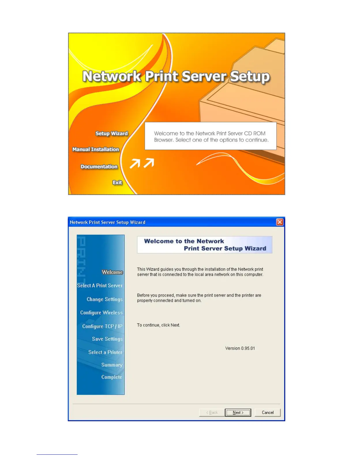 3. Choose Setup Wizard to install the print server and configure the connected printer.