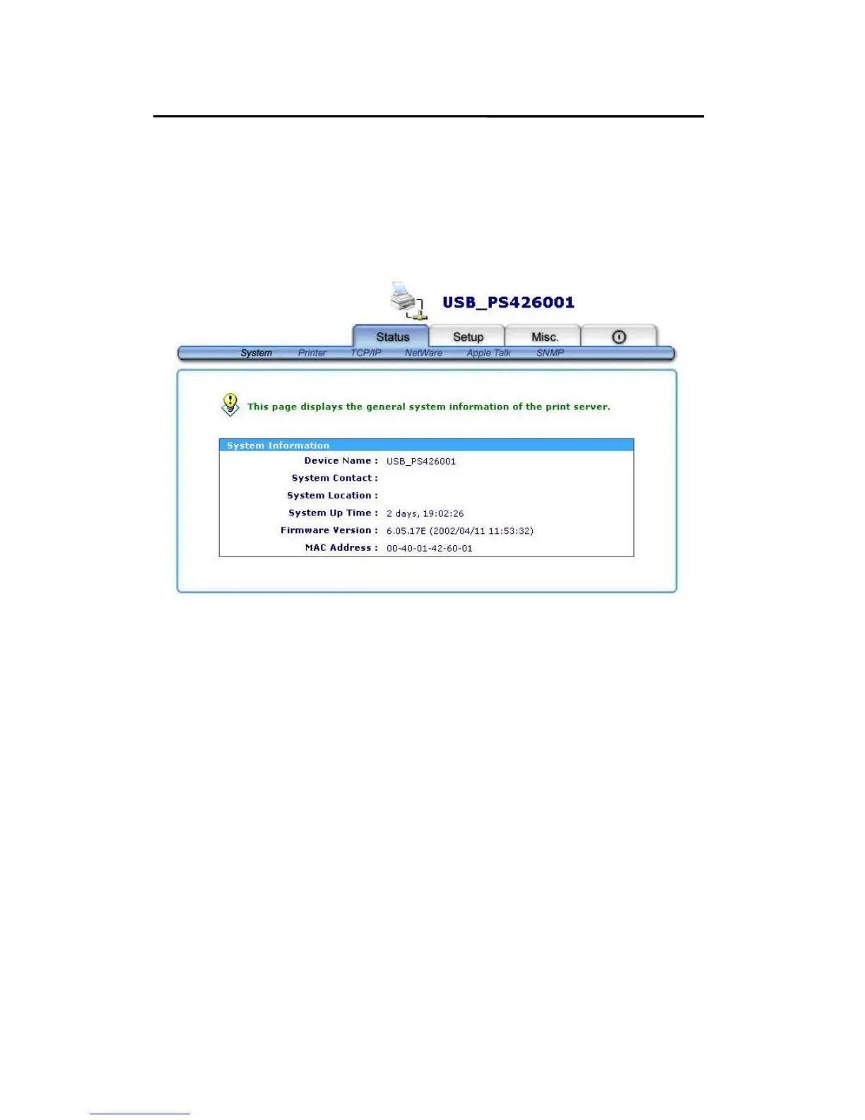 of the print server. To correct the print