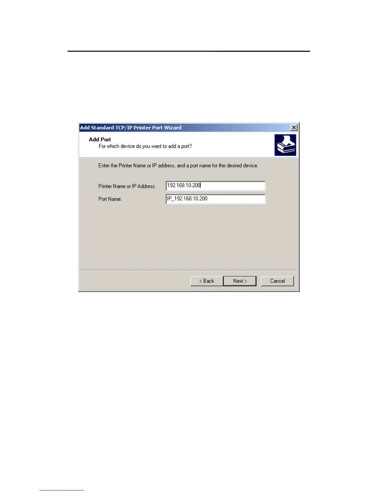 the Printer Name or IP Address box, Click Next.