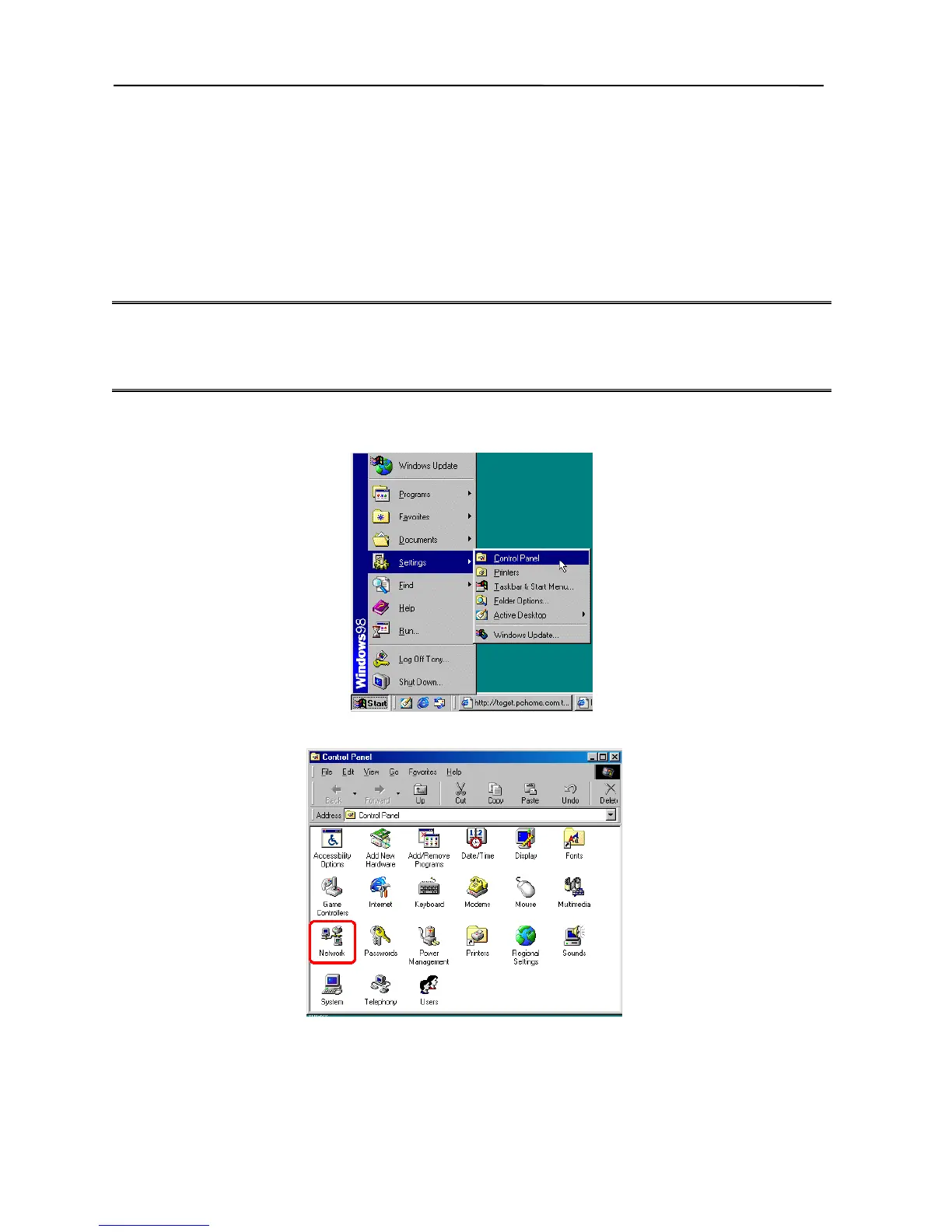1. From your Windows 95/98/Me or Windows NT/2000/XP desktop, click Start, point to