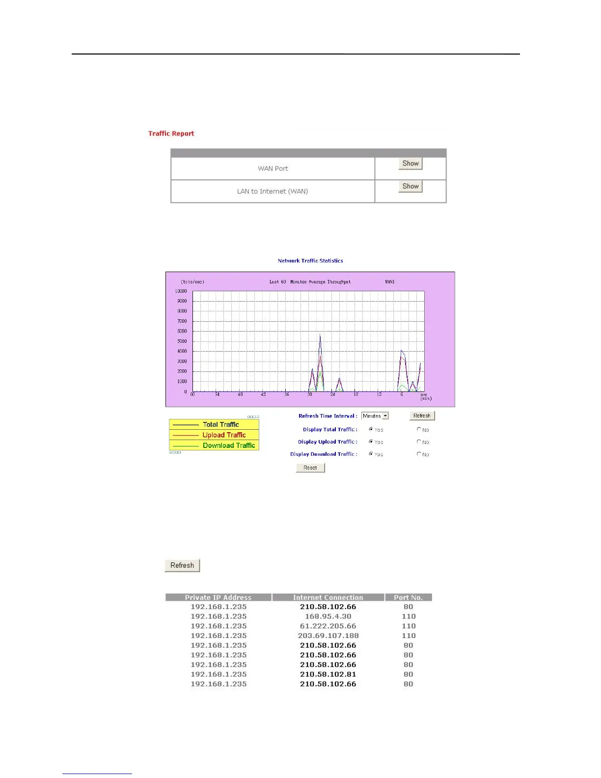 You can use this function to monitor all the connections from LAN to WAN. Click the Basic